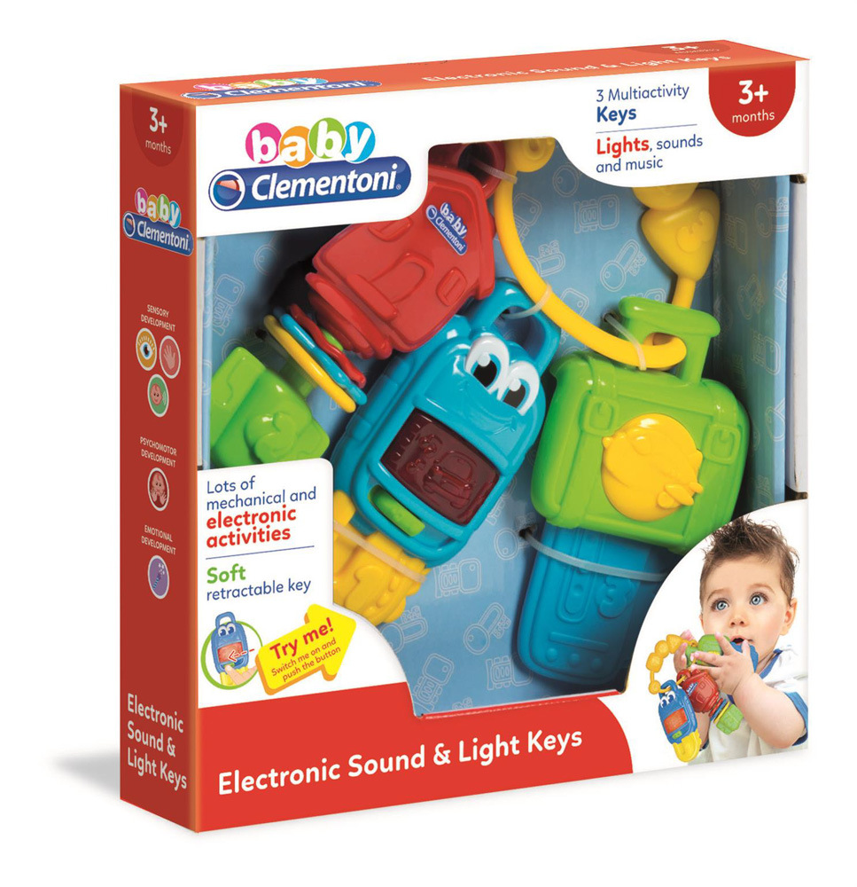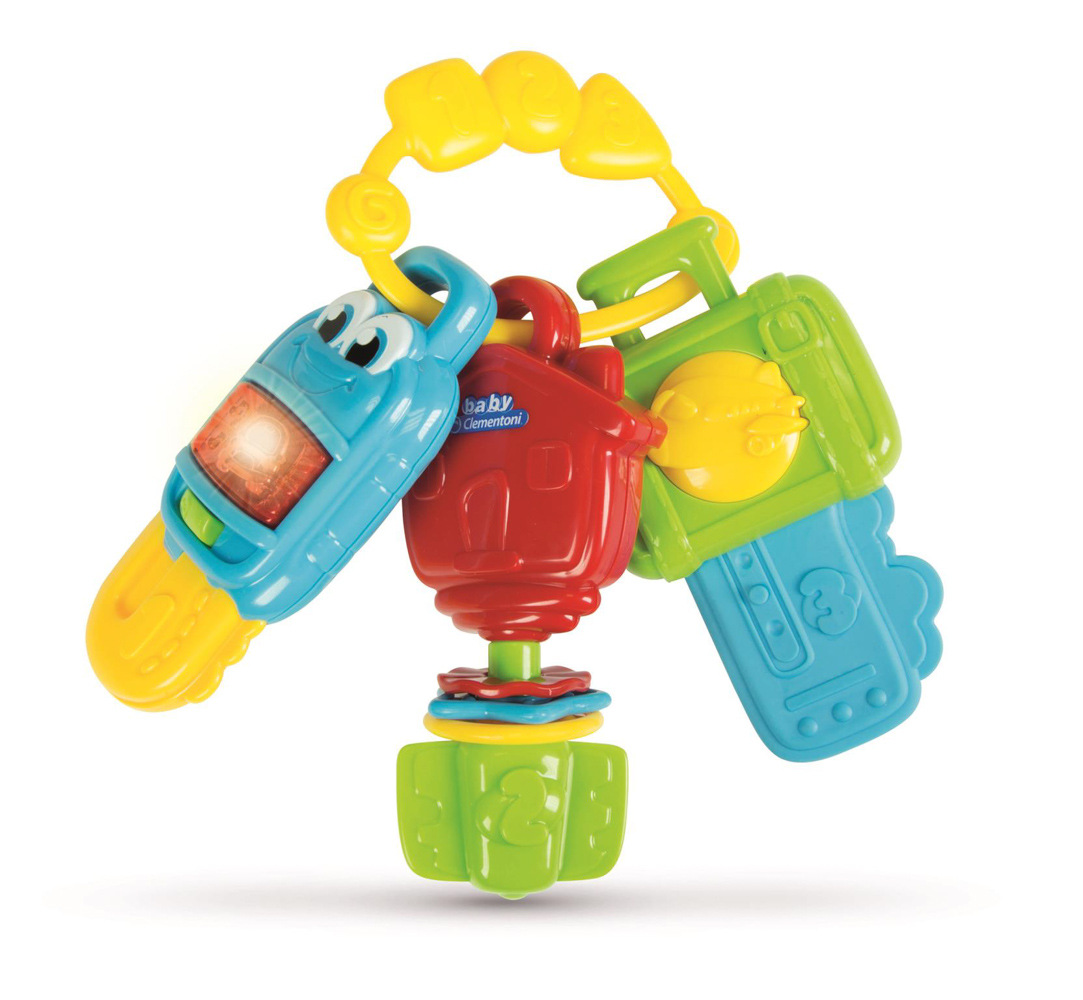 Interaktivní chrastítko elektronické klíče je ideální hračkou pro miminka do kočárku nebo do postýlky. Veselé chrastítko se třemi barevnými plastovými klíči zaujme pohled ležícího miminka díky světelným a zvukovým efektům. Každý klíč má navíc jinou funkci. Úchyt z měkkého plastu, poslouží jako kousátko při prořezávání prvních dětských zoubků. Rozměr balení: 22,5 x 23 x 5 cm. Baterie: 3xAG13/LR44 (součástí výrobku jsou baterie pouze demonstrativní účely). Věk: 3m+