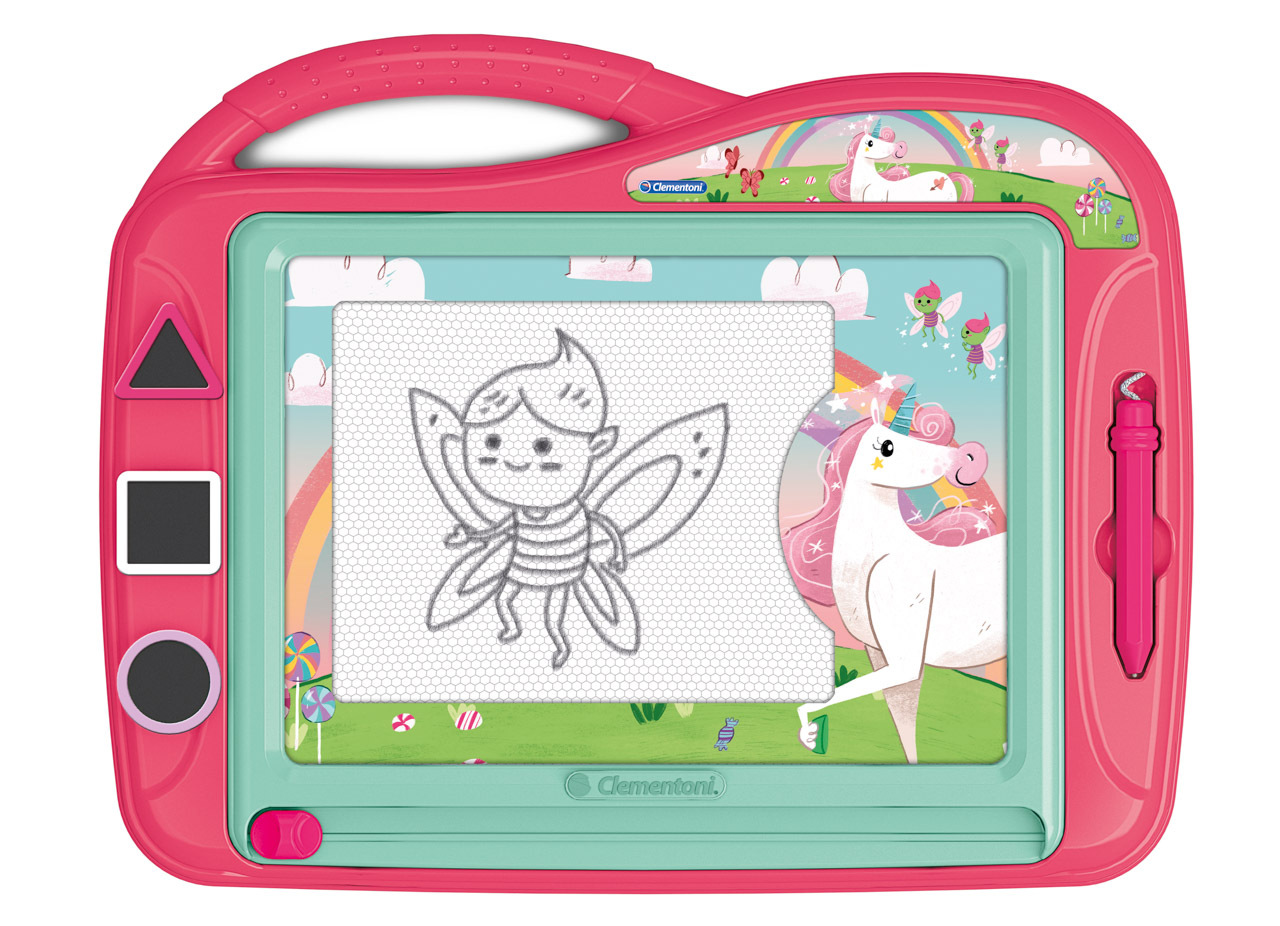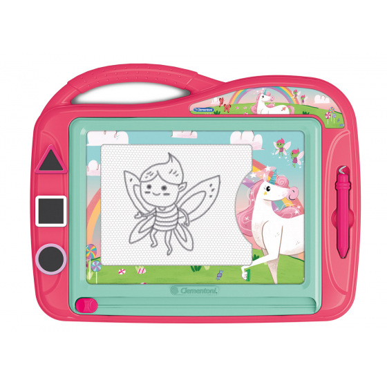 Speciální kreslící destička pro kreslení, psaní, mazání a zas a znovu... pro nekončící zábavu! Dokonalá hra, která popustí uzdu dětské fantazii, se 3 razítky k obohacení výtvorů a dotvoření kouzelných kreseb... například jednorožci! Stimuluje kreativitu, představivost a manuální zručnost. Rozměry balení: 47 x 34 x 3,5 cm Věk: 4+