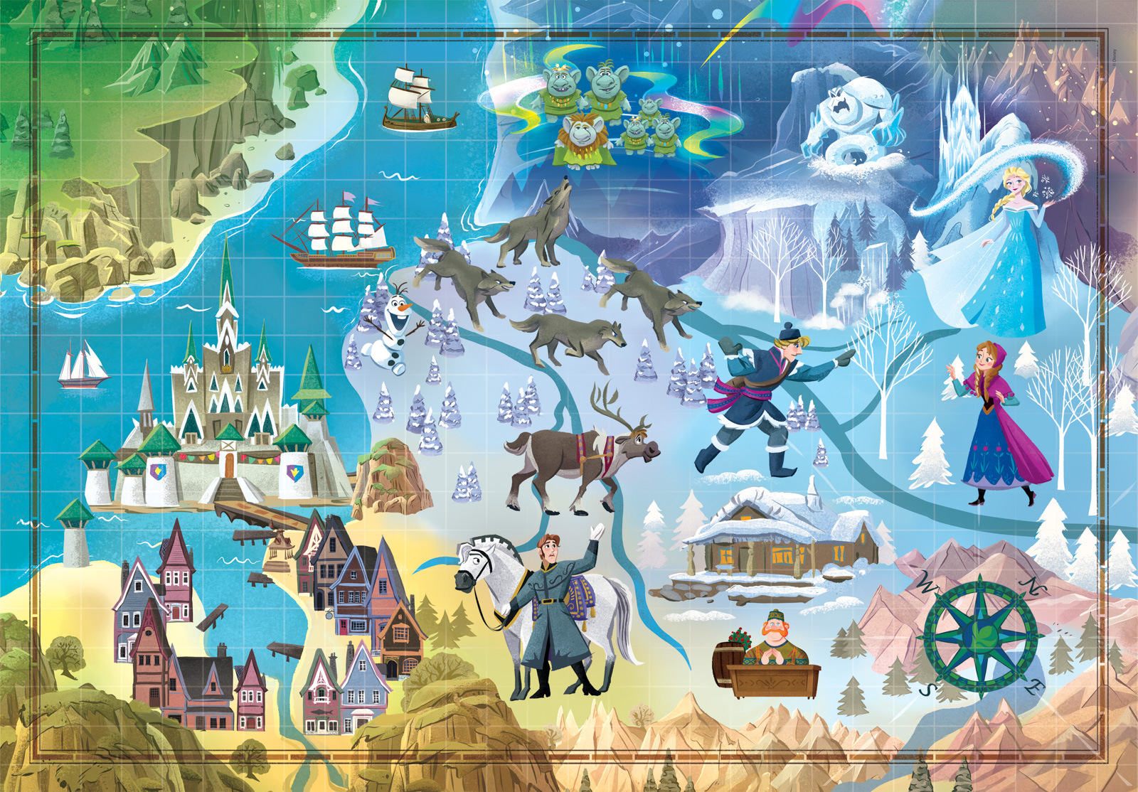 Puzzle zobrazující mapu světa Ledové království. Nejatraktivnější obrázky, největší rozmanitost velikostí a charakteristická kvalita Clementoni pro řadu, která je zlatým standardem pro všechny milovníky skládaček. Rozměr balení: 28,1 x 37 x 5,5 cm Věk: 14+