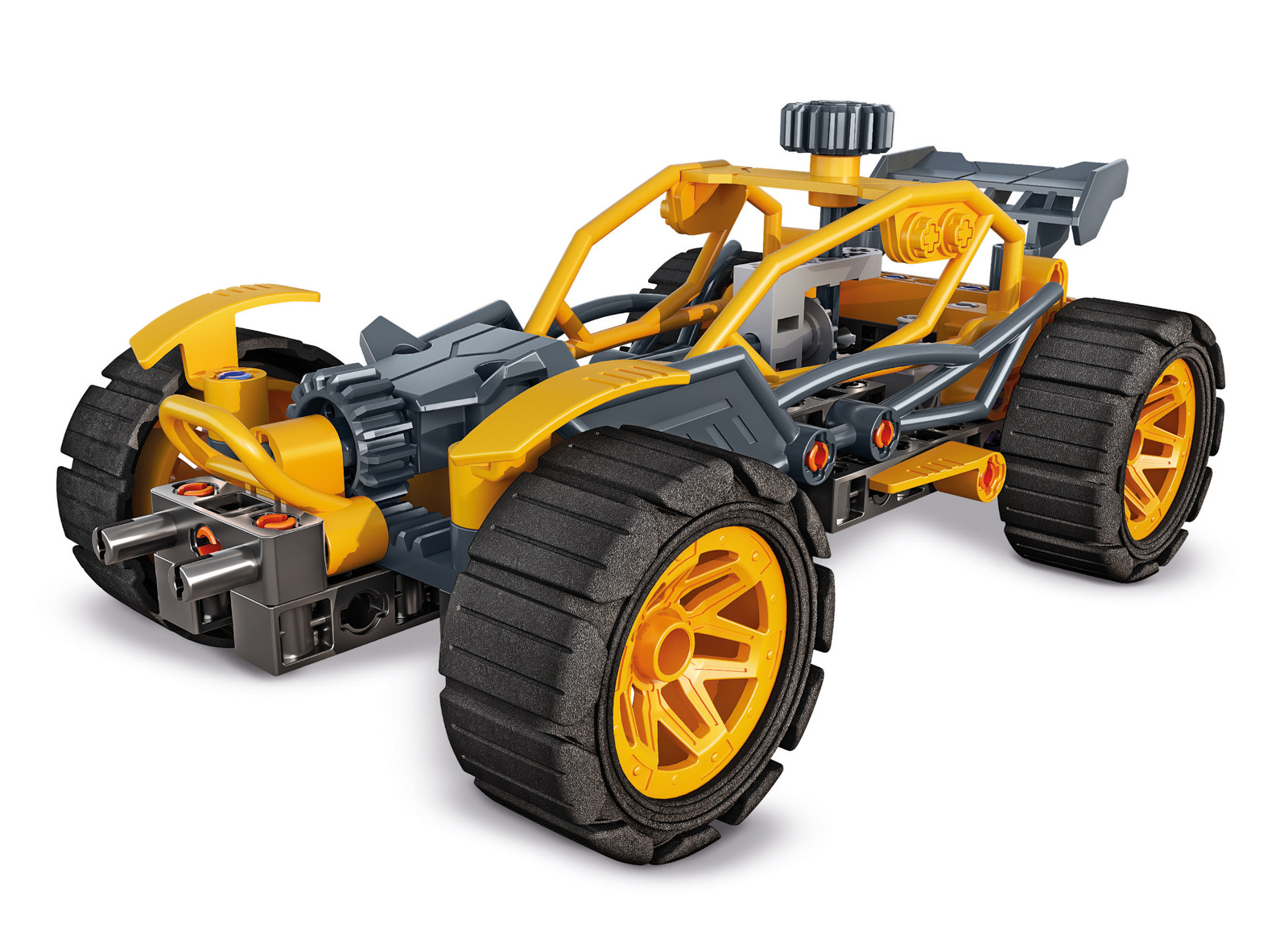 Vědecká sada pro zábavu při sestavování buginy nebo čtyřkolky. Stavebnice obsahuje více než 90 dílů pro stavbu 2 různých modelů vybavených převodovými mechanismy. Ilustrovaný návod vysvětluje, jak sestavit buginu krok za krokem. Spousta speciálních dílů, jako je převodový modul, převody a mnoho dalších, usnadňuje hraní vozidel. Aplikace „Science & Play Build“ integruje herní zážitek tím, že poskytuje montážní pomůcku pro všechny modely díky interaktivním 3D animacím. Rozměry balení: 27,6x4,5x18,8cm. Věk: 8+