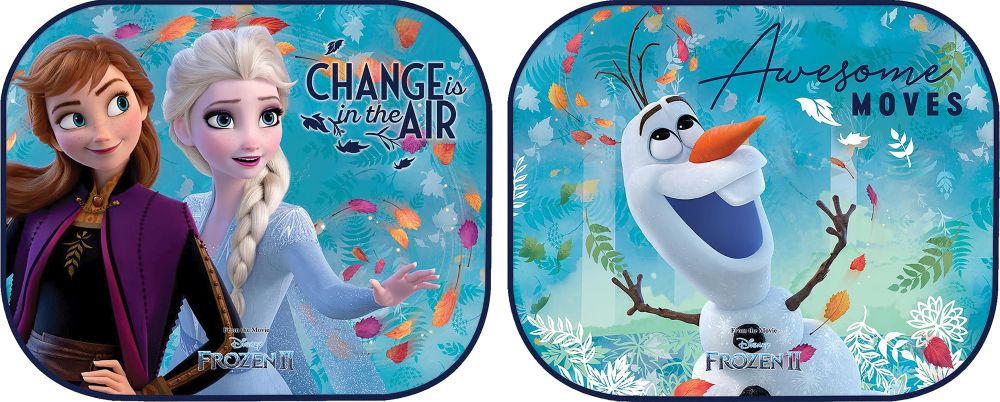 Sluneční clony Disney Frozen 2, které brání pronikání slunečních paprsků do vozidla. Jsou určeny na zadní, nebo boční skla automobilu. Upevnění pomocí přísavek.