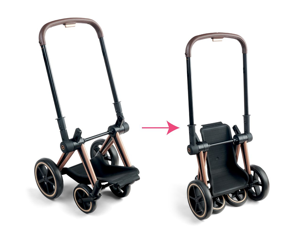 Kočárek Cybex Black pro panenky byl vyvinut společně s firmou Cybex podle originálního kočárku Cybex Priam, aby se matka a dítě mohly procházet se stejným kočárkem. Skládací kočárek 3v1 pro panenky o velikosti 36-52 cm je univerzální a lze jej použít také jako dětskou postýlku pro přepravu. Má nastavitelnou stříšku, odnímatelný ochranný kryt, robustní koš a lze lehce sklopit a složit. Rozměry (DxŠ) 60 x 36,5 cm. Výška rukojeti 64,5 cm.
