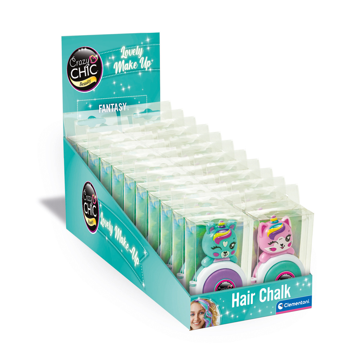 Překvapte všechny originálním účesem s Crazy CHIC – Lovelly Collection křídou na vlasy. Tato unikátní sada obsahuje práškové barvy na vlasy v roztomilých baleních s motivem fantasy zvířat – ideální pro mladé stylistky. Každá barva je uzavřena v praktické nádobce, která se snadno vejde do batohu nebo kabelky. Díky nim si můžete během pár okamžiků vykouzlit barevné melíry – aniž byste museli navštívit kadeřníka. Assort je náhodný mix modelů. Výběr nelze ovlivnit. Rozměry balení: 10 x 5,6 x 2,2 cm. Věk: 6+