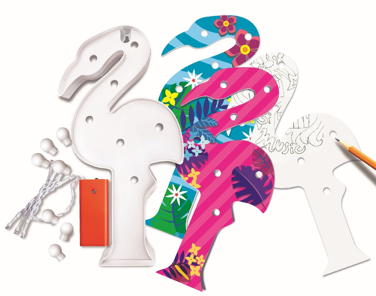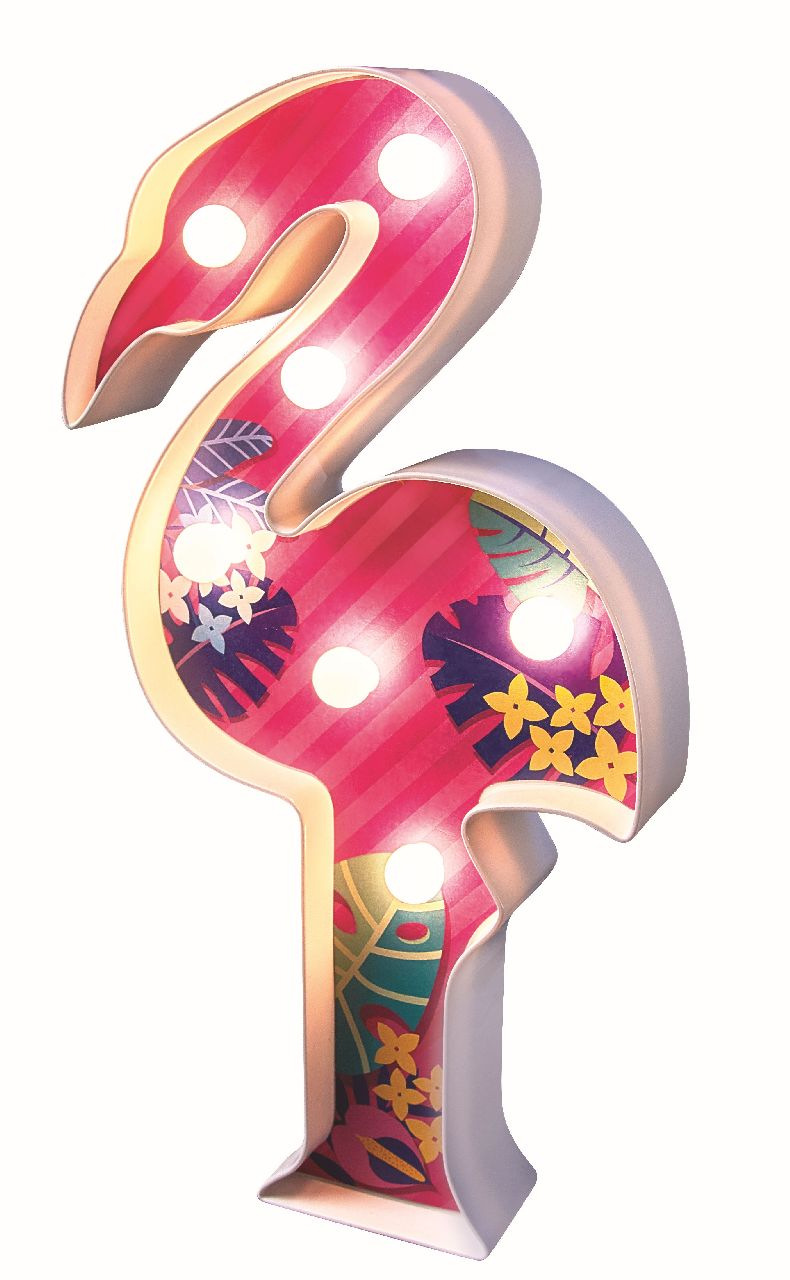 Bauen Sie Ihr eigenes Flamingolicht. Es kann entweder an der Wand montiert oder freistehend sein.