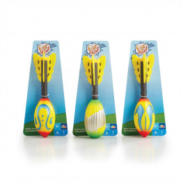 Tato měkká pěnová raketka je navržená tak, aby udržela odpor vzduchu na minimu. Díky svému aerodynamickému tvaru může letět daleko, když je vržena správným směrem. Házecí raketa má dokonalý tvar, aby se vešla do menších rukou a je skvělým učebním nástrojem pro rugby nebo házení s přáteli a rodinou. Rozměr balení: 26x32x21cm. Věk: 3+
