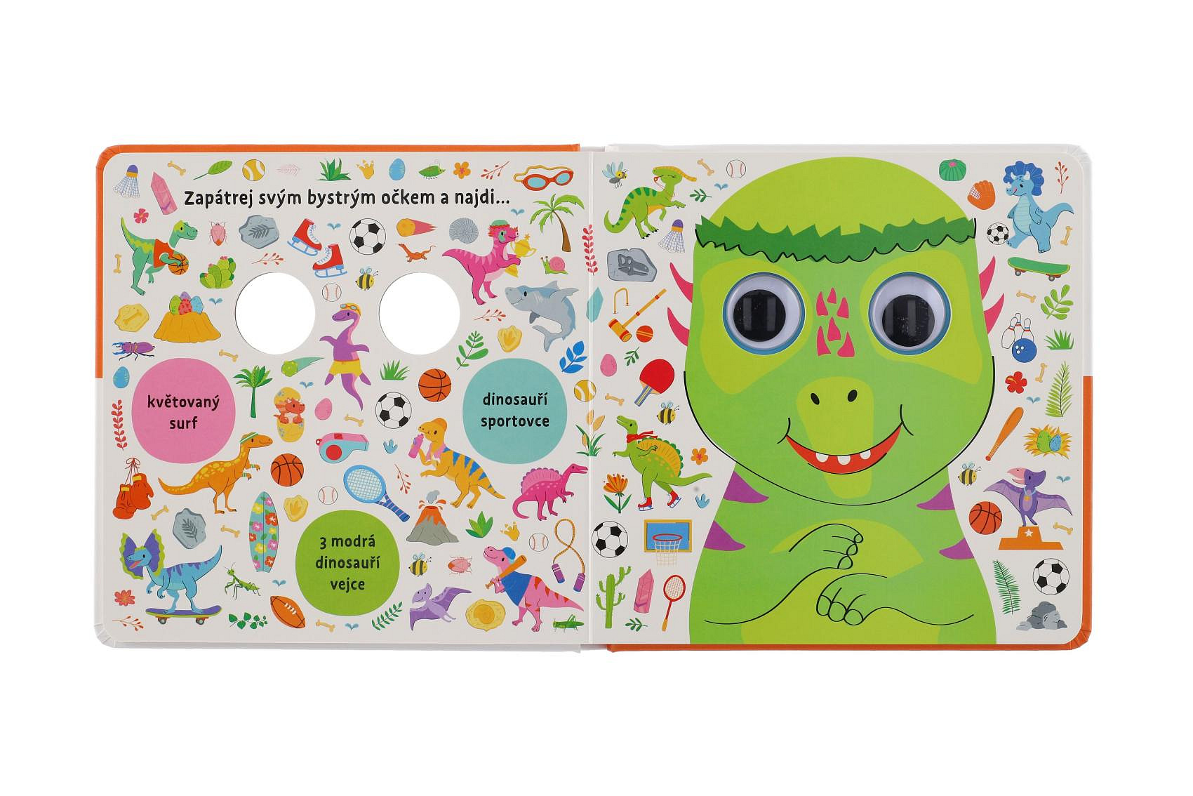 S touhle zábavnou knížkou se dá podniknout přímo detektivní pátrání mezi dinosaury! Hledání všem malým čtenářům zpříjemní postavičky s pohyblivýma očima, které najdou na každé stránce.