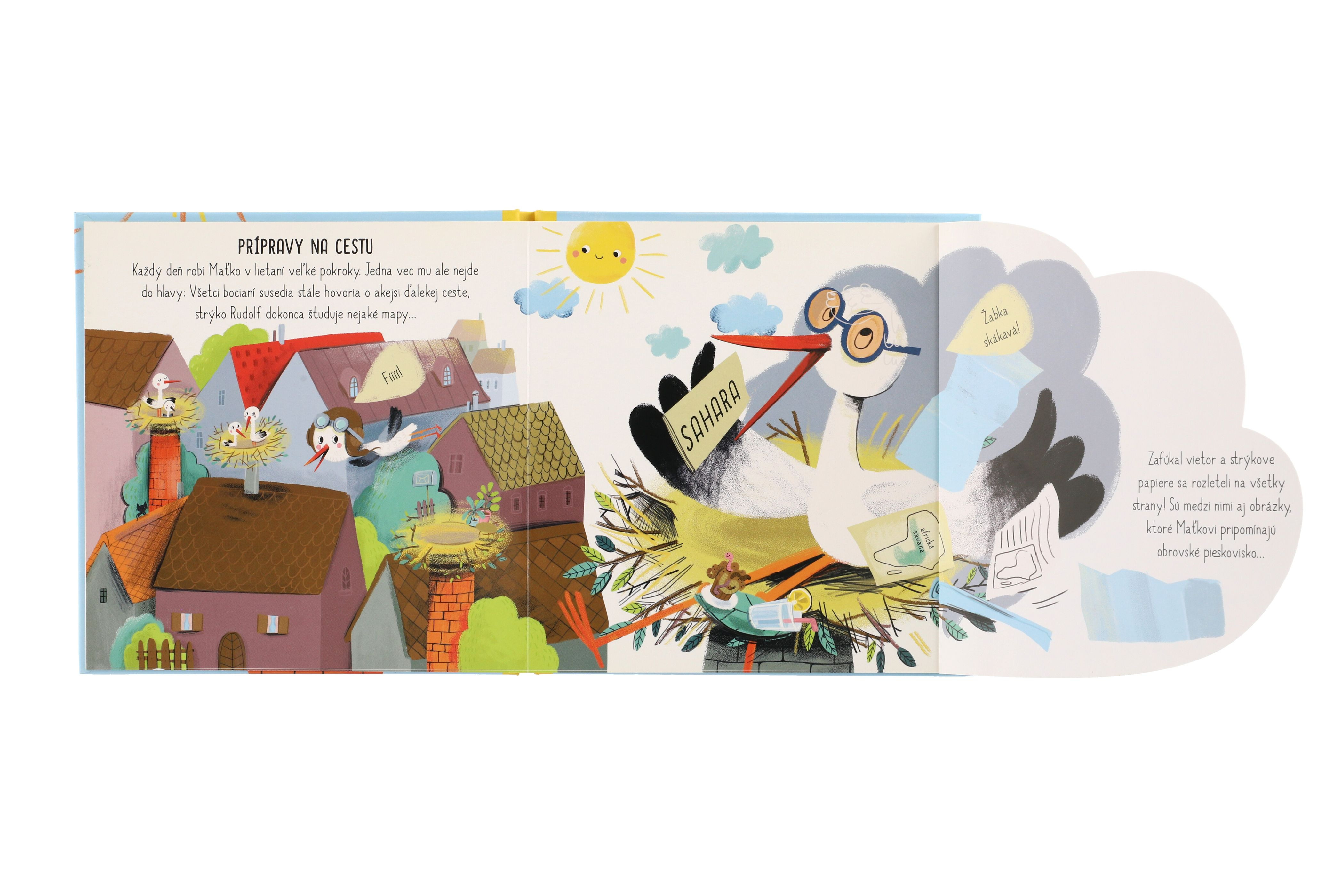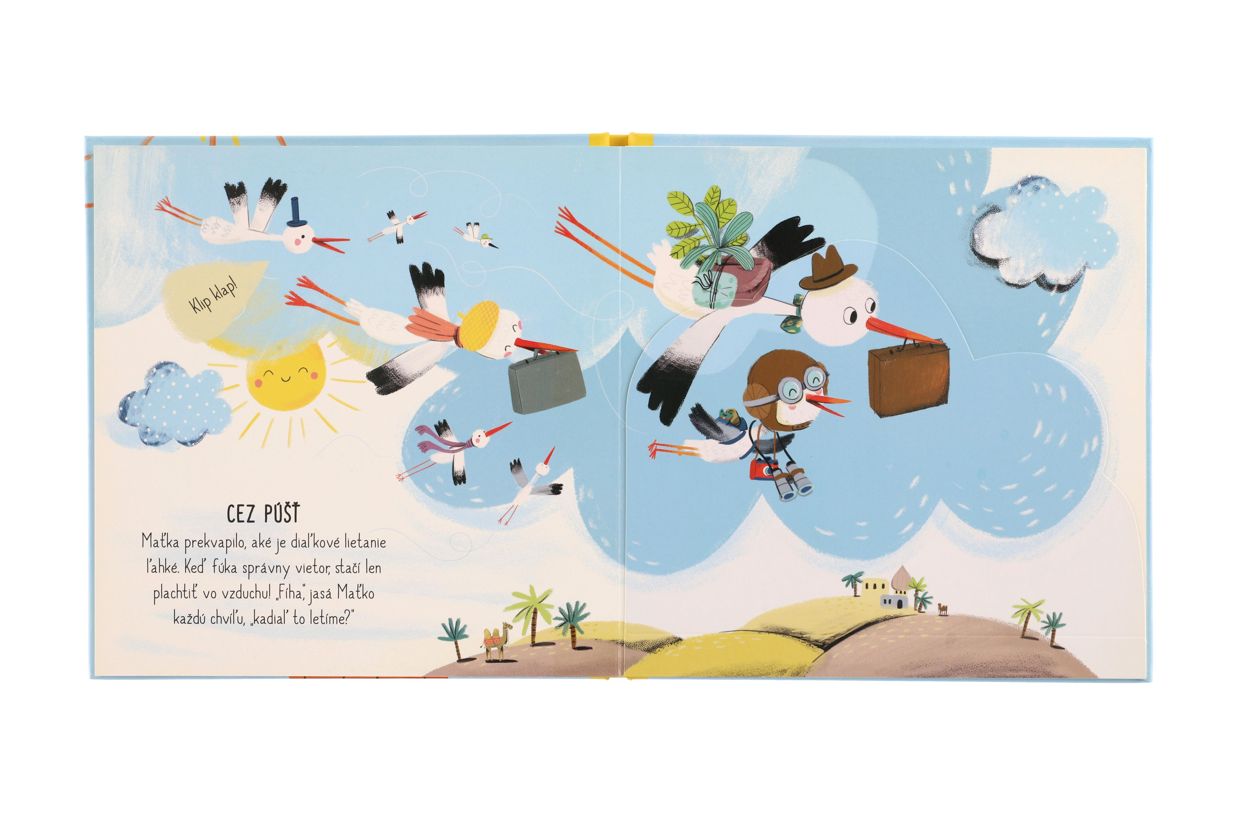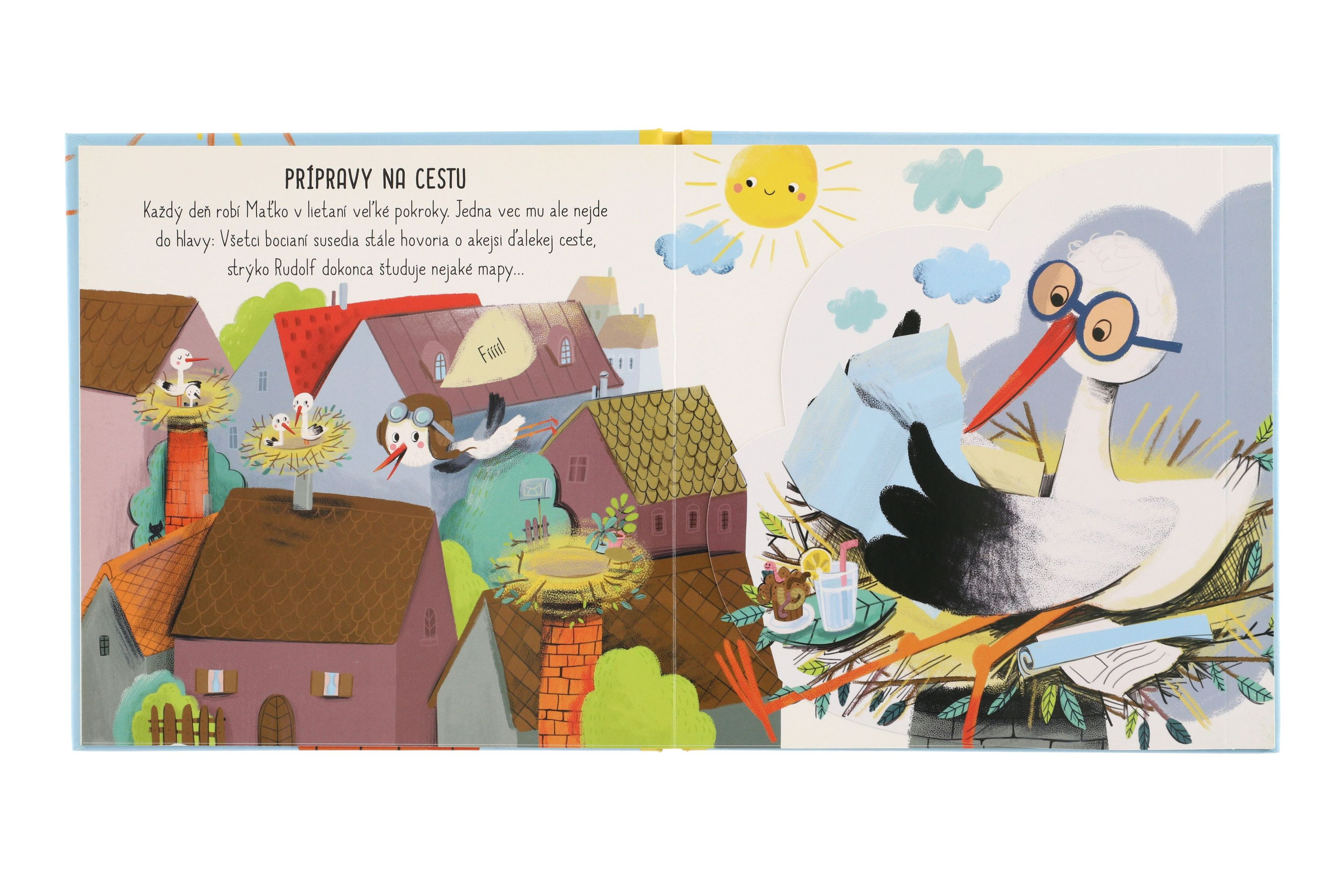Letné dni sa začali pozvoľna krátiť a malý bocian Maťko, ktorý sa sotva naučil trochu lietať, zvedavo pozoruje, ako sa jeho rodičia, ďalší príbuzní a všetci bocianí susedia pripravujú na ďalekú cestu. Kam majú namierené? To Maťko na začiatku príbehu vôbec netuší. Počas čítania budete nielen pozorovať dlhú bocianiu cestu do teplých krajín, ale dozviete sa aj to, prečo niektoré vtáky na zimu odlietajú. Na každej dvojstrane na vás čakajú malé záhady, ktoré odhalíte pomocou odklápacích okienok! Rozmer: 19,5 x 20 cm Vhodné od 3 rokov