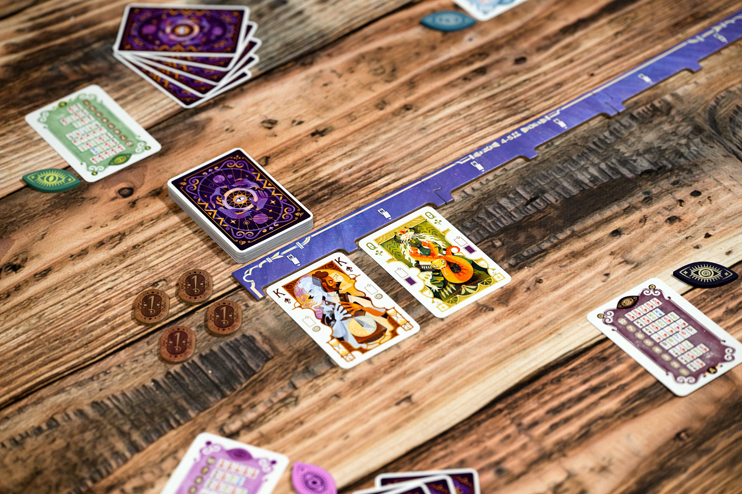 - Téma práce s osudem a předpověďmi je elegantně propojeno s herními mechanikami bez zbytečných pravidlových komplikací nebo umělých omezení.