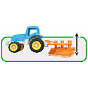 Plastový traktor s funkčním pluhem z řady Millennium přinášející dětem realistický zážitek ze světa zemědělské techniky. Pluh je plně pohyblivý a použitelný při hře, kdy může simulovat orání a práci na poli. Robustní pogumovaná kola a pevná konstrukce zajišťují stabilitu při jízdě i při používání pluhu. Součástí balení jsou také kartonové bloky, které umožňují vytvářet různé herní scénáře a podporují fantazii a jemnou motoriku. Vyrobené z kvalitních plastů v Itálii. Rozměry balení: 44 x 16,8 x 17 cm (d x š x v). Váha: 0,66 kg. Doporučený věk od 10 měsíců.