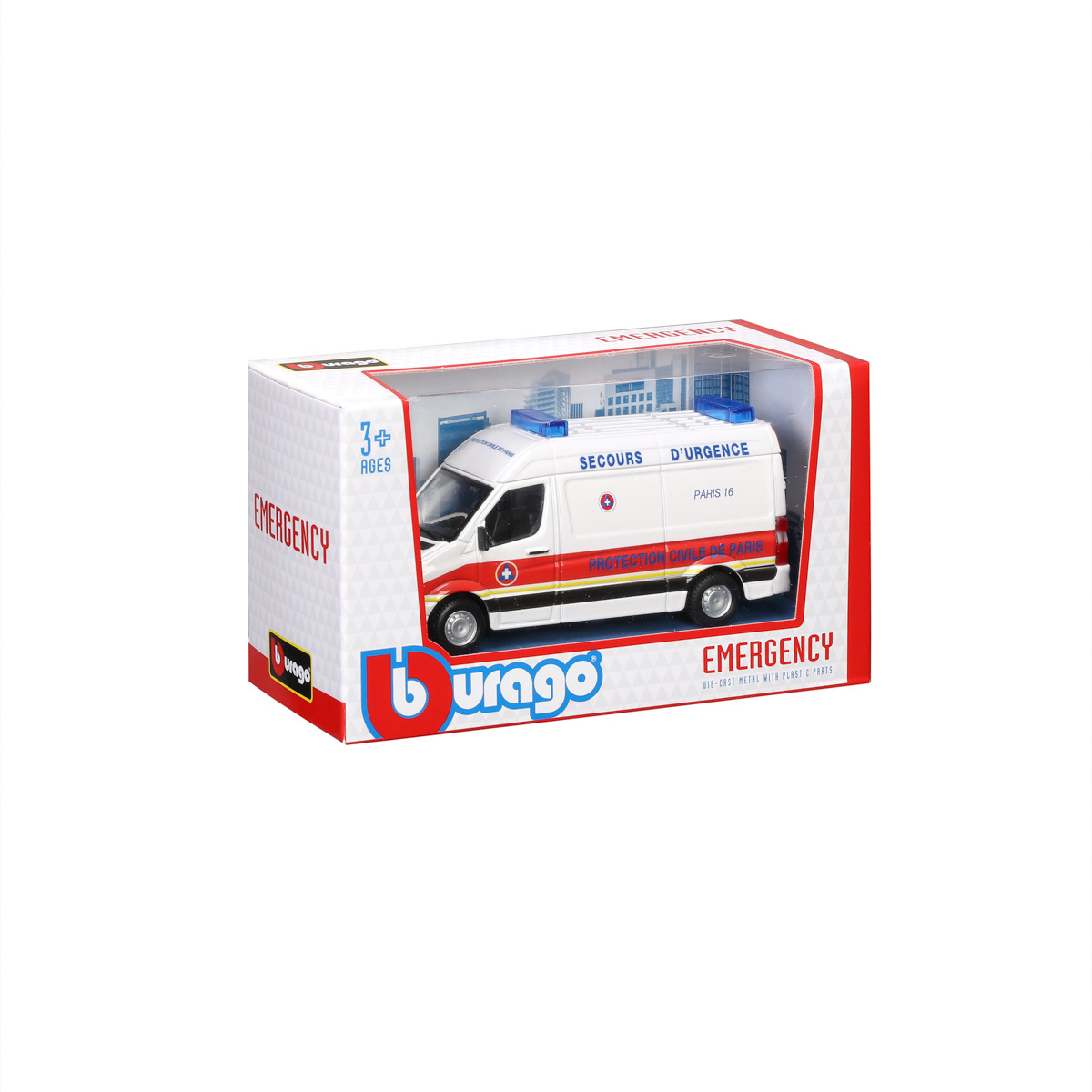 Modely záchranných vozidel Bburago v měřítku1:50 z kolekce Emergency jsou sbírkou modelů s vysokým důrazem na přesnost detailů. Modely jsou vyrobeny z litého kovu s plastovými detaily. Baleno v krabičce. Nevhodné pro děti do 3 let. Rozměry balení: 9 x 22,4 x 6,5 cm. Věk: 3+