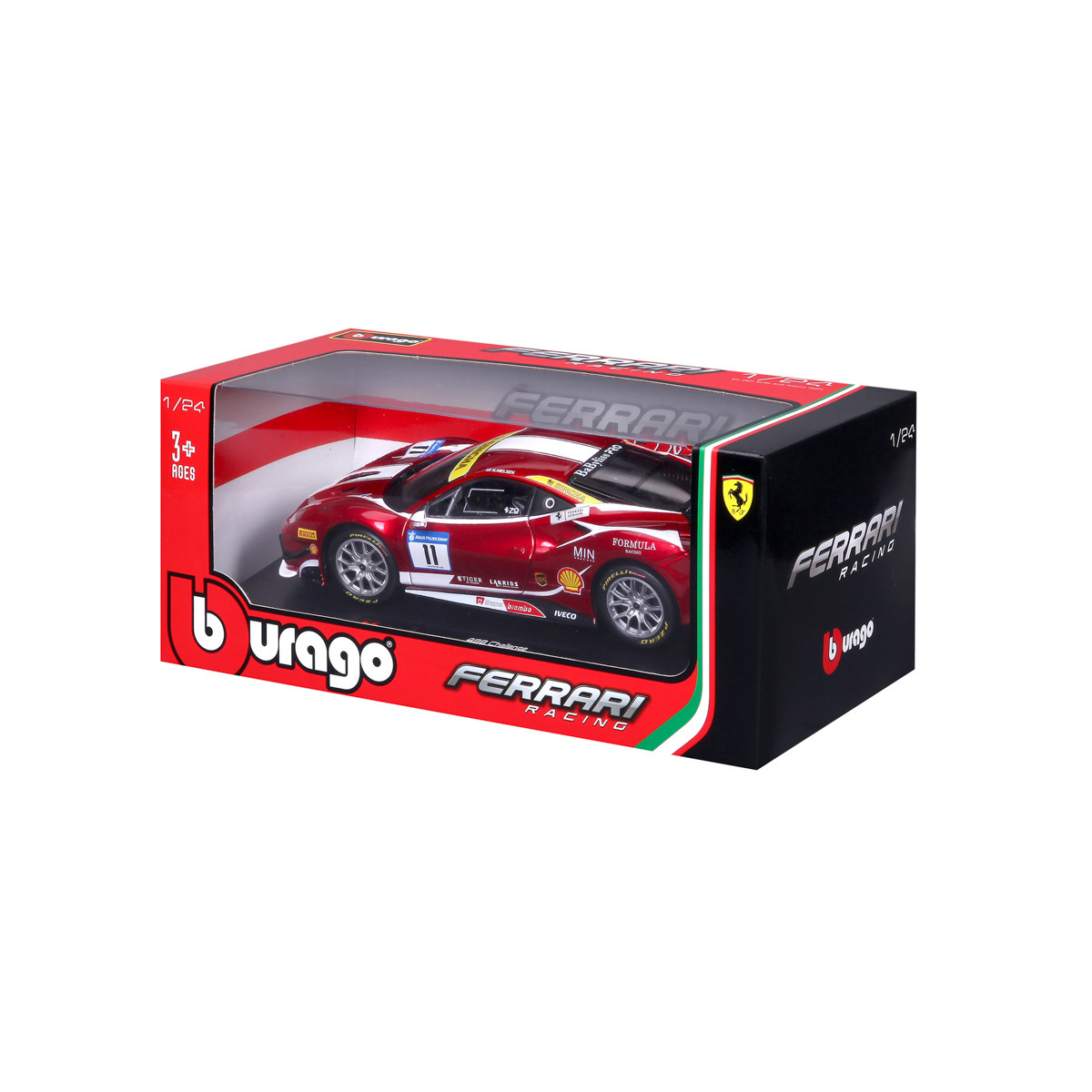 Modely závodních automobilů Ferrari v měřítku 1:24 z kolekce RACING jsou sbírkou krásného designu s vysokým důrazem na přesnost detailů. Modely jsou vyrobeny z litého kovu s plastovými detaily. Detailní provedení motorových prostor a interiéru. Většina modelů z kolekce má otevírací dveře, kufr nebo kapotu. Některé z modelů mají funkční řízení. Každý z modelů je v závodním designu a se závodním číslem. Model je namontován na výstavním stojánku. Baleno v krabičce. Nevhodné pro děti do 3 let. Rozměry balení: 10,3 x 24,5 x 12,6 cm. Věk: 14+