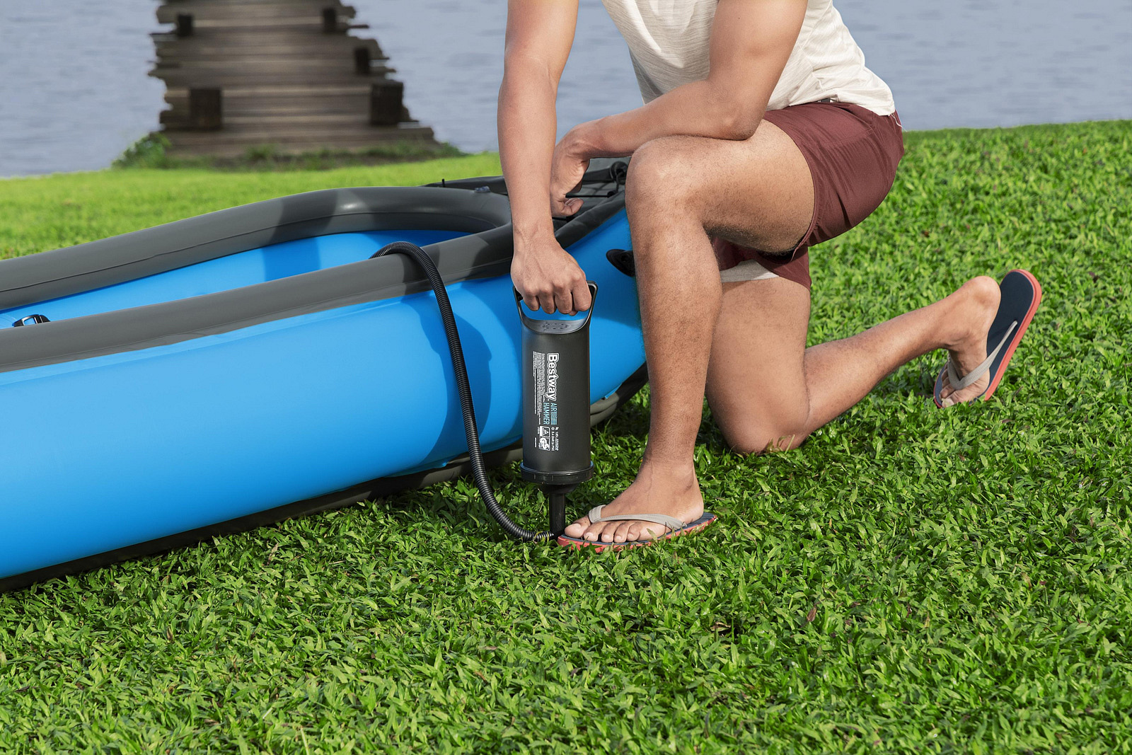 Enthält: 1 Kajak, 2 Paddel, 1 Air Hammer Handpumpe, 2 Flossen, 1 Reparaturflicken. Verpackungsmaße: 45 x 62 x 26,5 cm. Verpackungsgewicht: 12,16 kg.
