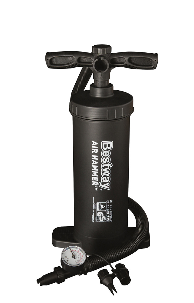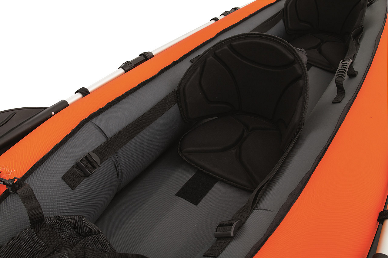 Obsahuje samolepicí opravné náplasti, 2 ks hliníkových Combo pádel o rozměrech 218 cm, každý s 2 břity a 1 dvojčinným napouštěcím čerpadlem.