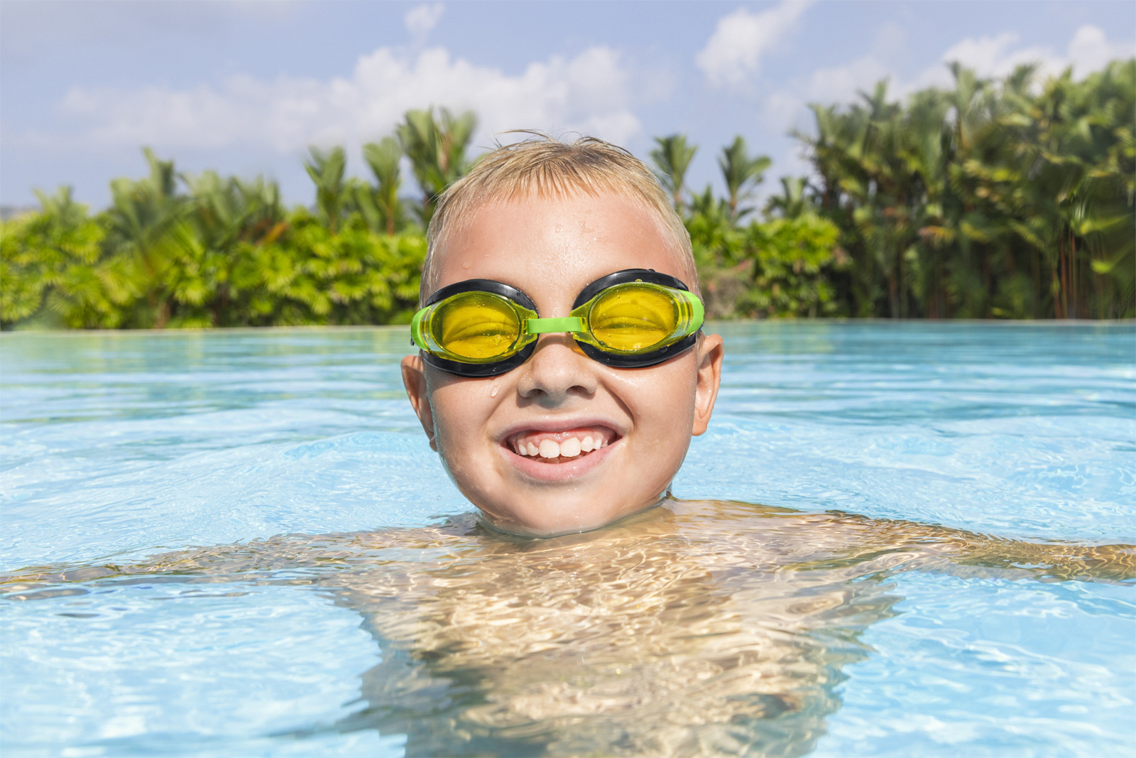 Měkké a pohodlné plavecké brýle Bestway pro děti s barevnými čočkami. Širokoúhlá skla s ochranným povrchem chránící proti UV záření. Plně nastavitelný nosní můstek a silikonový pásek na hlavu. 100% bez latexu. 3 barevné provedení (růžová, modrá, zelená). Věk: 3+