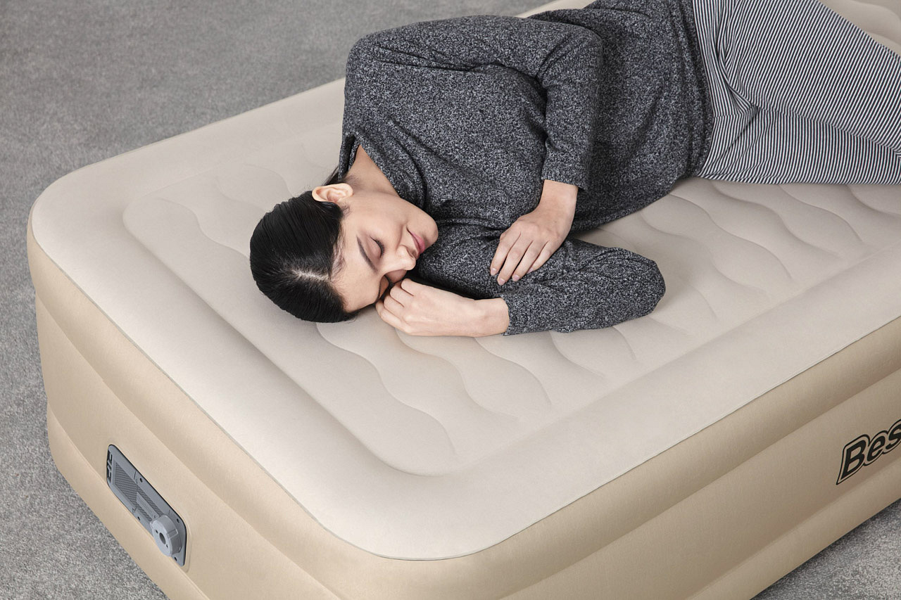 Semišová nafukovací matrace je vyrobena z kvalitních materiálů, které zaručují vysokou odolnost. Anatomické tvarovaní s povrchovou úpravou zajišťuje maximální pohodlí. Matrace s komfortním spaním pro 2 osoby. Rychleuzavíretelný ventil. Matrace je určena jak pro vnitřní tak vnější použití. Rozměry matrace: 203cm x152 cm x 22cm. Rozměry balení: 30,5 x 35 x 12 cm.
