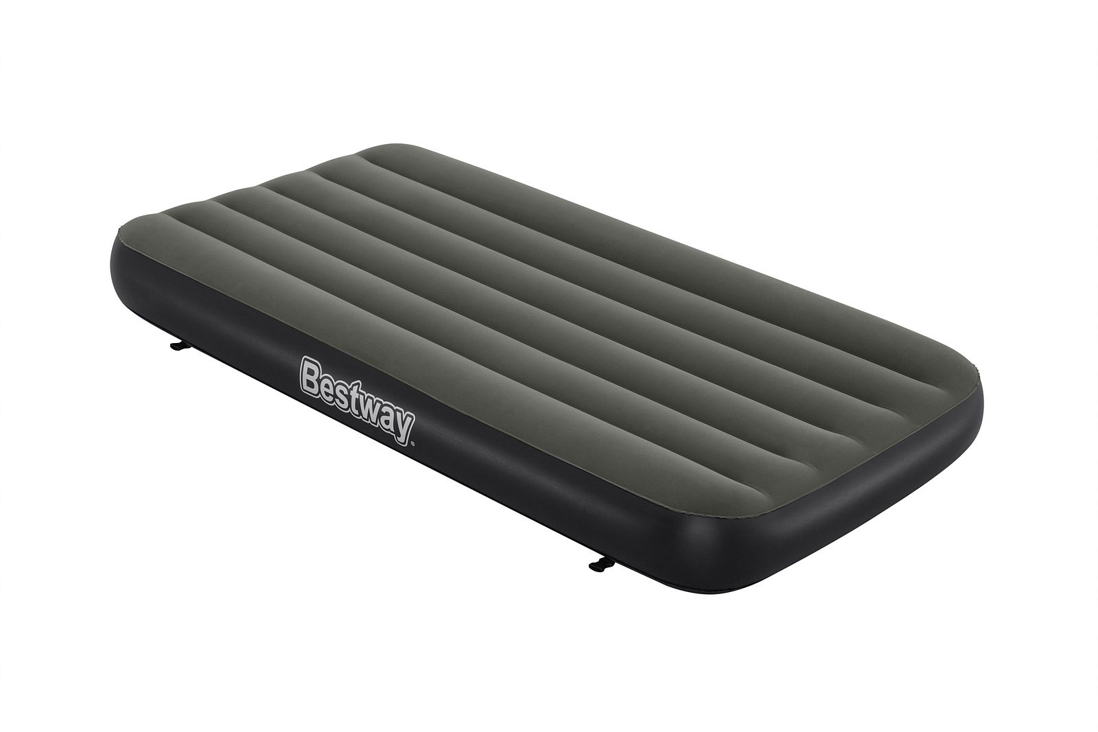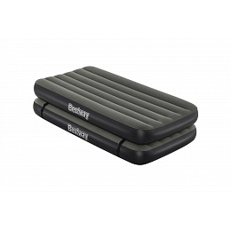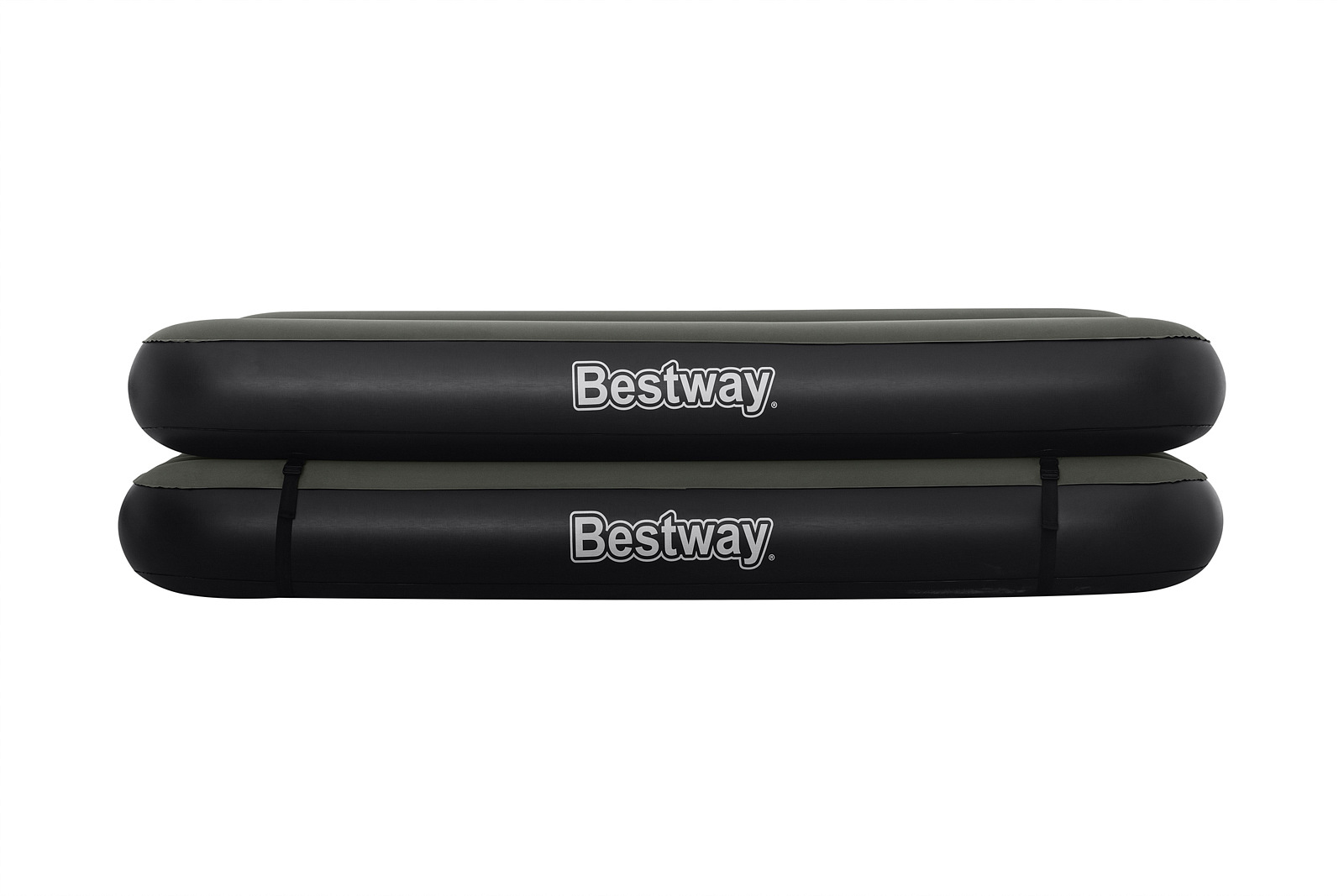 Bestway® Nafukovací matrace Fortech™ nabízí vysoký komfort a dlouhou životnost díky inovativnímu materiálu Fortech™, který kombinuje PVC a polyester. Oproti běžnému PVC je až o 10 % lehčí, přitom však o 75 % odolnější proti roztržení, o 92 % méně náchylný k deformaci a až 150x odolnější proti oděru. Speciální tkaná struktura navíc zajišťuje, že povrch není ani příliš horký, ani studený. Luxusní Premium Soft Top™ povrch se dvěma vrstvami zajišťuje měkké ležení, zatímco vnitřní konstrukce podporuje správnou polohu těla a rovnoměrné rozložení tlaku. Rámová konstrukce pomáhá zabránit sklouznutí během spánku. Díky integrované elektrické pumpě je postel nafouknutá za 3–4 minuty a po použití ji snadno vyfouknete a uložíte do přiložené tašky. Vestavěné elektrická pumpa funguje na střídavý proud 220–240 V. Matrace je vhodná pro vnitřní použití. Obsah: 1 nafukovací matrace, 1 úložný vak, 1 opravná záplata. Počet osob: 1. Maximální nosnost: 180 kg. Rozměr nafouknuté matrace: 46 x 97 x 191 cm. Roz