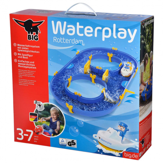 Big velký vodní svět Amsterdam. Pomocí vodních zátarasů děti ovlivňují tok vody, a tím dávají do pohybu různé lodičky apod. Nechybí vodní kolo, nákladní přístav, 2 zásobníky na vodu s uzávěry a pumpou. Součástí jsou 3 figurky. Rozměry: 175 x 27 x 143 cm. Hmotnost 6,2 kg.