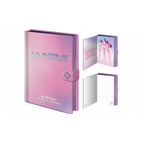 K-pop Demon Hunters blok A5 se sponou DPL10 je stylový zápisník, který kombinuje praktickou funkčnost s atraktivním designem inspirovaným populární tématikou K-pop Demon Hunters. Jeho pevná obálka v jemně růžovo-fialovém odstínu je zdobená holografickým nápisem.