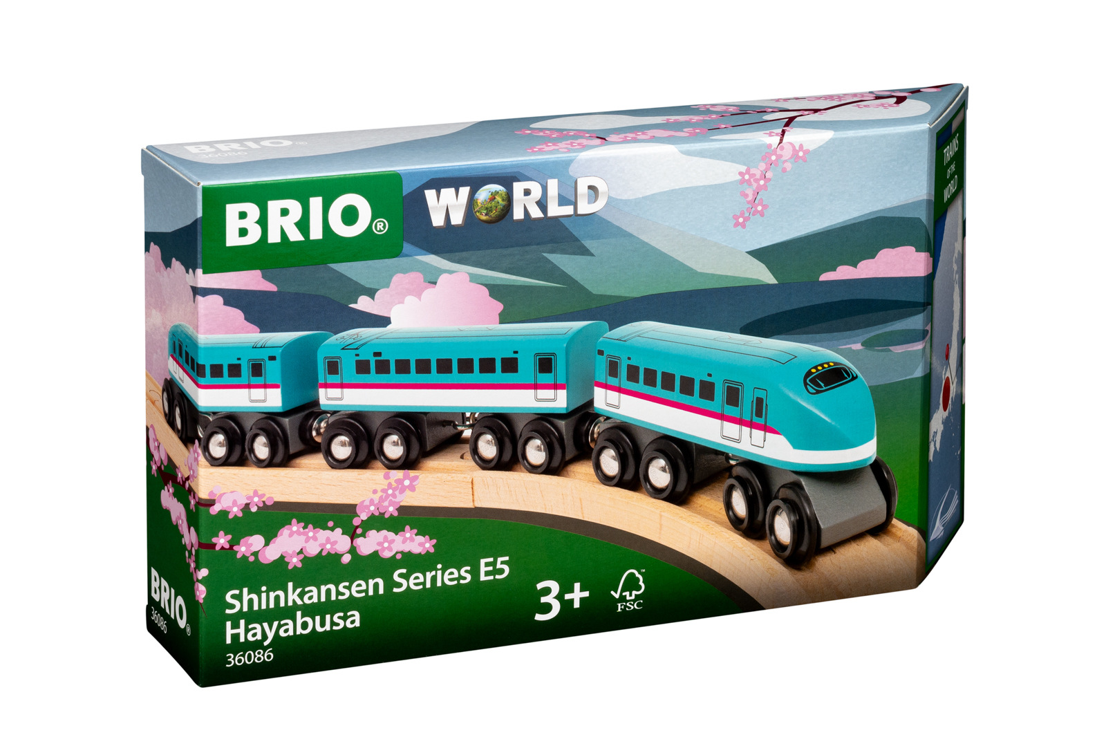 Projeďte úžasnou japonskou krajinou na palubě vlaku Šinkanzen Hajabusa E5 – součásti edice světové vlaky. Tento dřevěný vysokorychlostní vlak má dvě lokomotivy a jeden osobní vagón v zářivých barvách, přičemž každý má osm kol na dvojitých podvozcích. Hajabusa, která dosahuje maximální rychlosti 320 km/h, je nejrychlejším rychlovlakem v celém Japonsku. Prozkoumejte další ikonické železniční trasy a slavné vlaky z celého světa se zbytkem edice světové vlaky. Sada obsahuje 3 díly: 2x lokomotiva, 1x osobní vagón. Certifikace FSC®. Rozměry balení: 15 x 27 x 5 cm. Věk: 3+