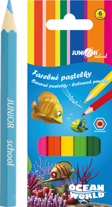Buntstifte farbiges Holz kurz Ocean World sechseckig 6 Stk. in Schachtel 4,5x11x1cm 24 Stk. im Karton