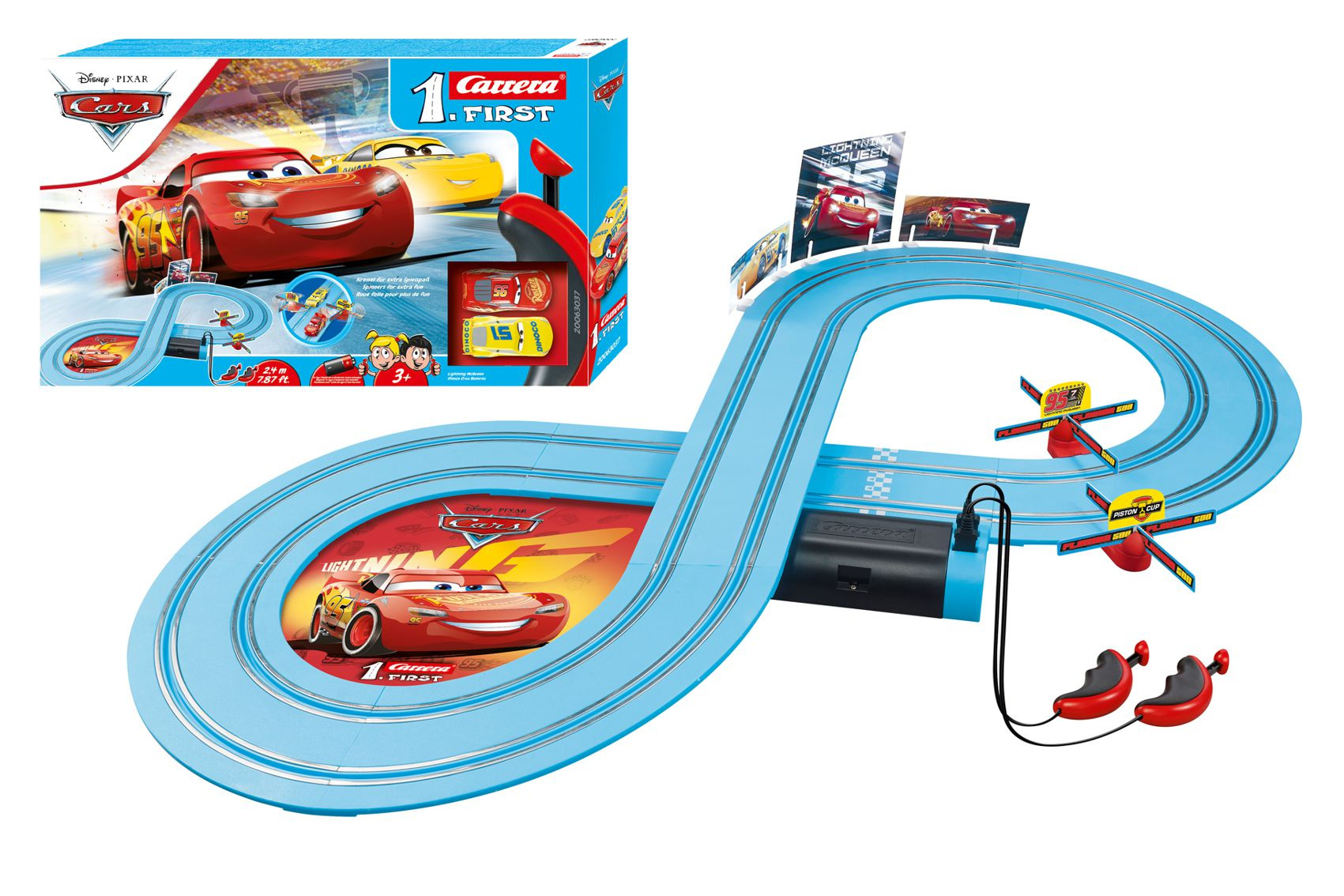 Carrera First Autos/Cars 2,4m Plastik Autorennbahn + 2 Autos mit Batterien in Schachtel 50x30x8cm