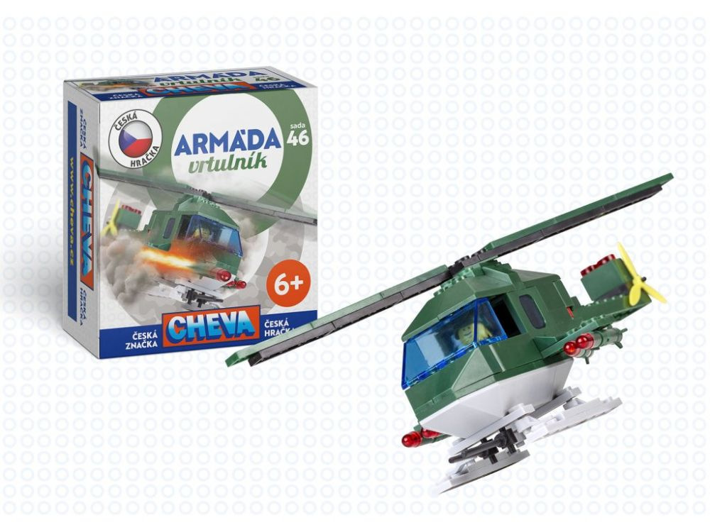 In der Verpackung finden Sie eine detaillierte Anleitung zum Zusammenbau eines sehr detailliert ausgearbeiteten Kampfhubschraubers mit Besatzung. Beide Propeller drehen sich. Das Baukasten-Set ist aus hochwertigem Kunststoff gefertigt. CHEVA ist ein variabler polytechnischer Baukasten, der aus einer Reihe von Bauteilen und Zubehör besteht. Alle Baukästen, die mit dieser Schutzmarke gekennzeichnet sind, sind untereinander vollständig kompatibel.