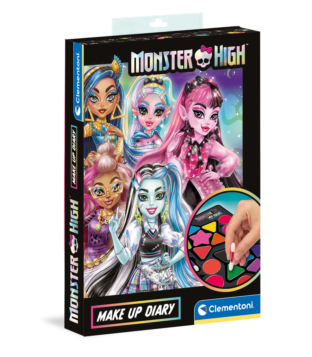 MONSTER HIGHT – Make-up diary. Sada obsahující oční stíny a rtěnky pro vytvoření jedinečného make-upu. Perfektní doplněk k hraní s postavami Monster High a zároveň vytváří úžasné malování na obličej. Kreativní sada, která dává průchod dětské fantazii a manuálním dovednostem a umožňuje vám vytvořit skutečný monster make-up. Kosmetika je testovaná a bezpečná pro dětskou pokožku, hypoalergenní a netoxická. Lze ji snadno odstranit vodou. Snadné použití, vhodné i pro začátečníky. Skvělá sada pro kreativní malování na obličej, které využijete při narozeninových oslavách nebo karnevalech. Rozměr balení: 21,2 x 15 x 3,5 cm. Věk 6+