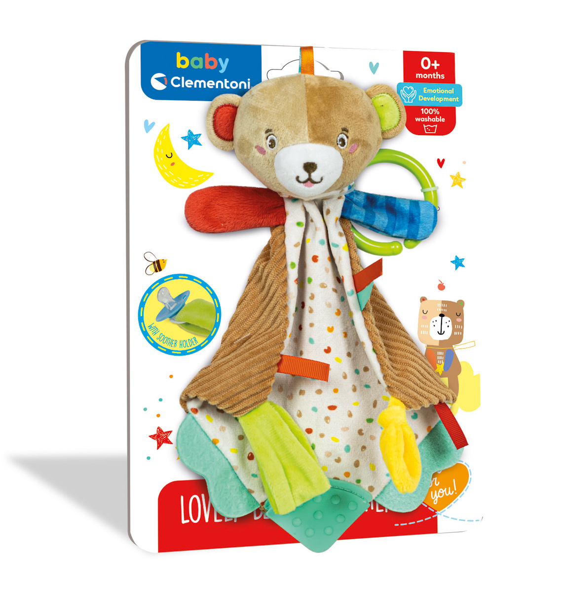 Clementoni Rassel - Plüsch-Schmusetuch mit Griff - Bärchen