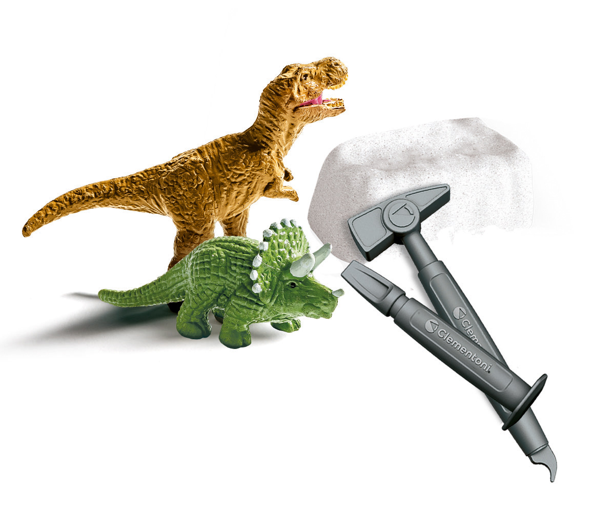 Sada Clementoni Science and play. Mini vědecká sada pro objevování dinosaurů nabízí skvělou archeologickou zábavu pro děti od 7 let. Malí paleontologové budou mít k dispozici všechny nástroje pro vykopání dvou dinosaurů z bloku. Hračka výborně rozvíjí vědecké zájmy, manuální zručnost a zvídavost. Rozměr balení: 9 x 6,5 x 3 cm.
