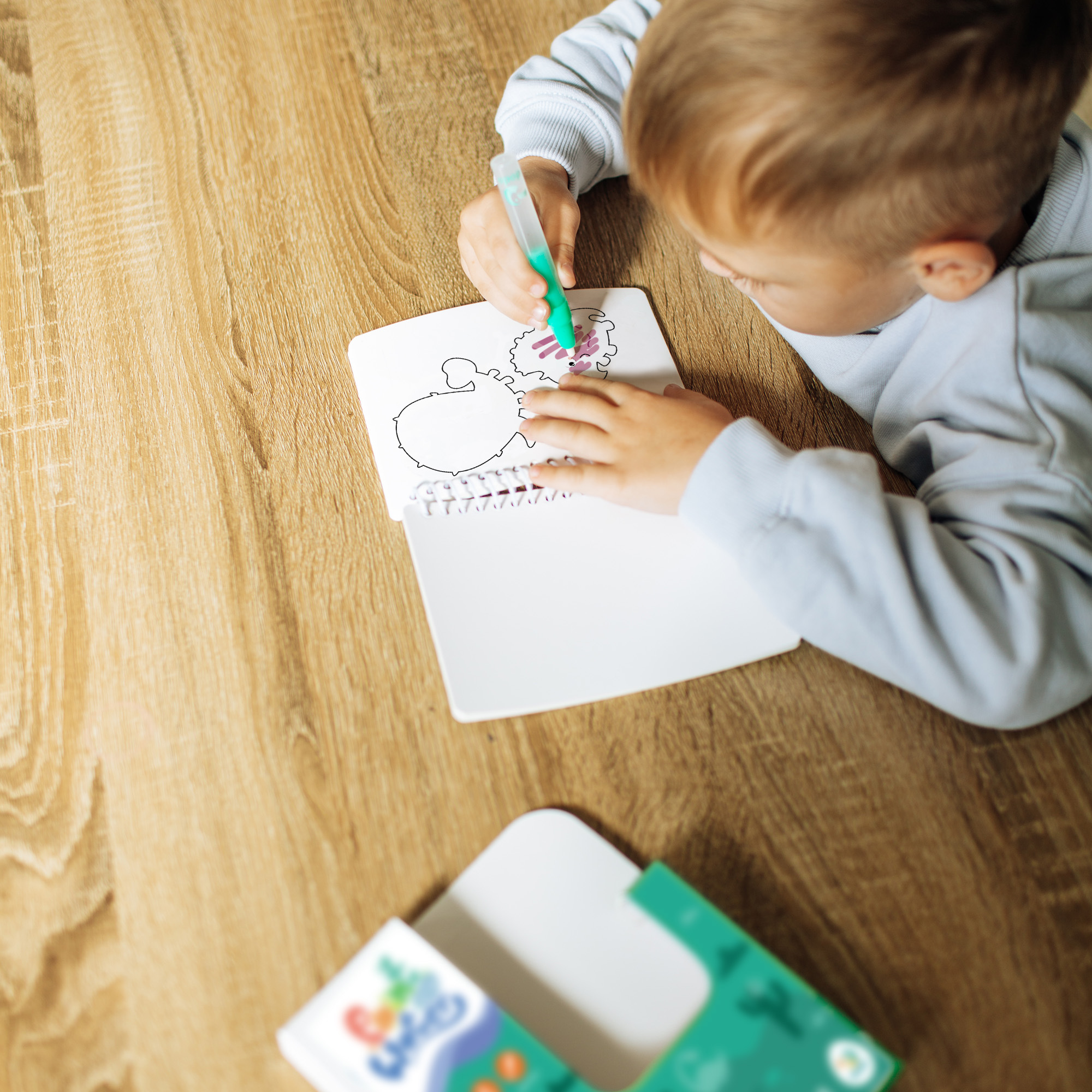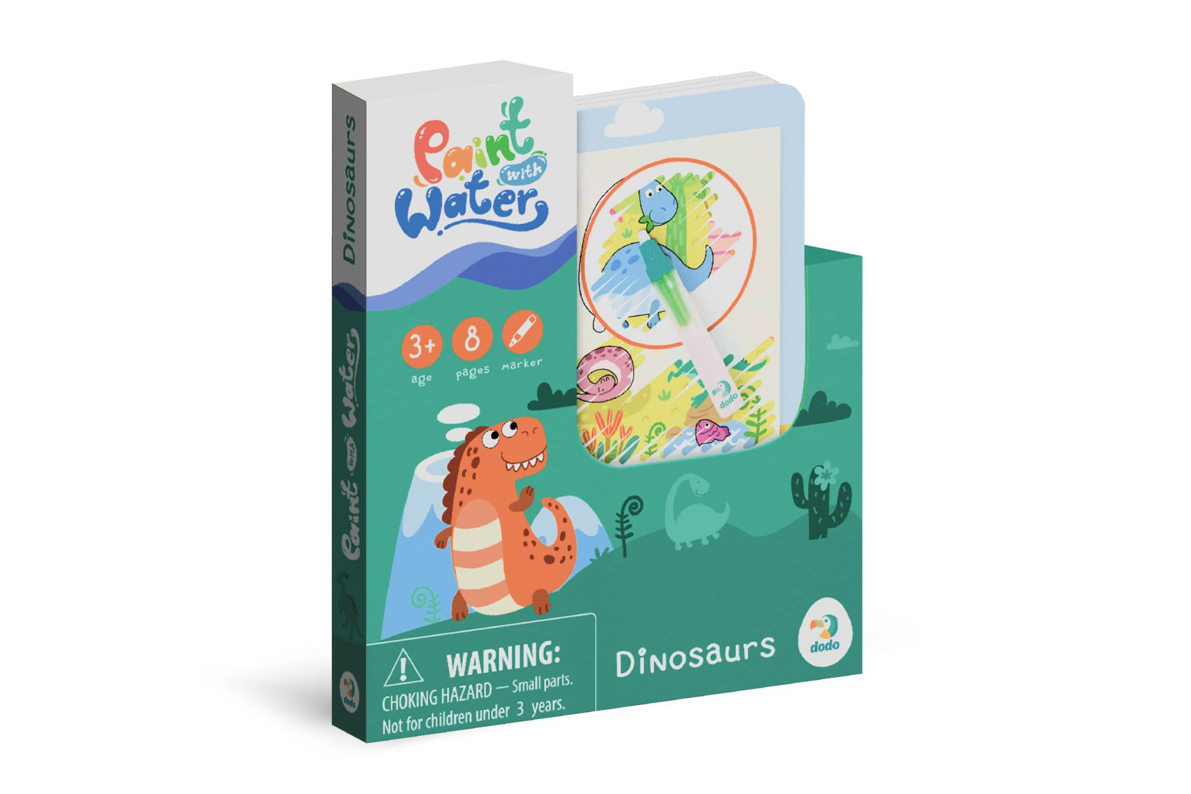 DODO Magisches Malen mit Wasser Dinosaurier Malbuch/Block 12x14cm + Pinsel 8 Blätter in der Box