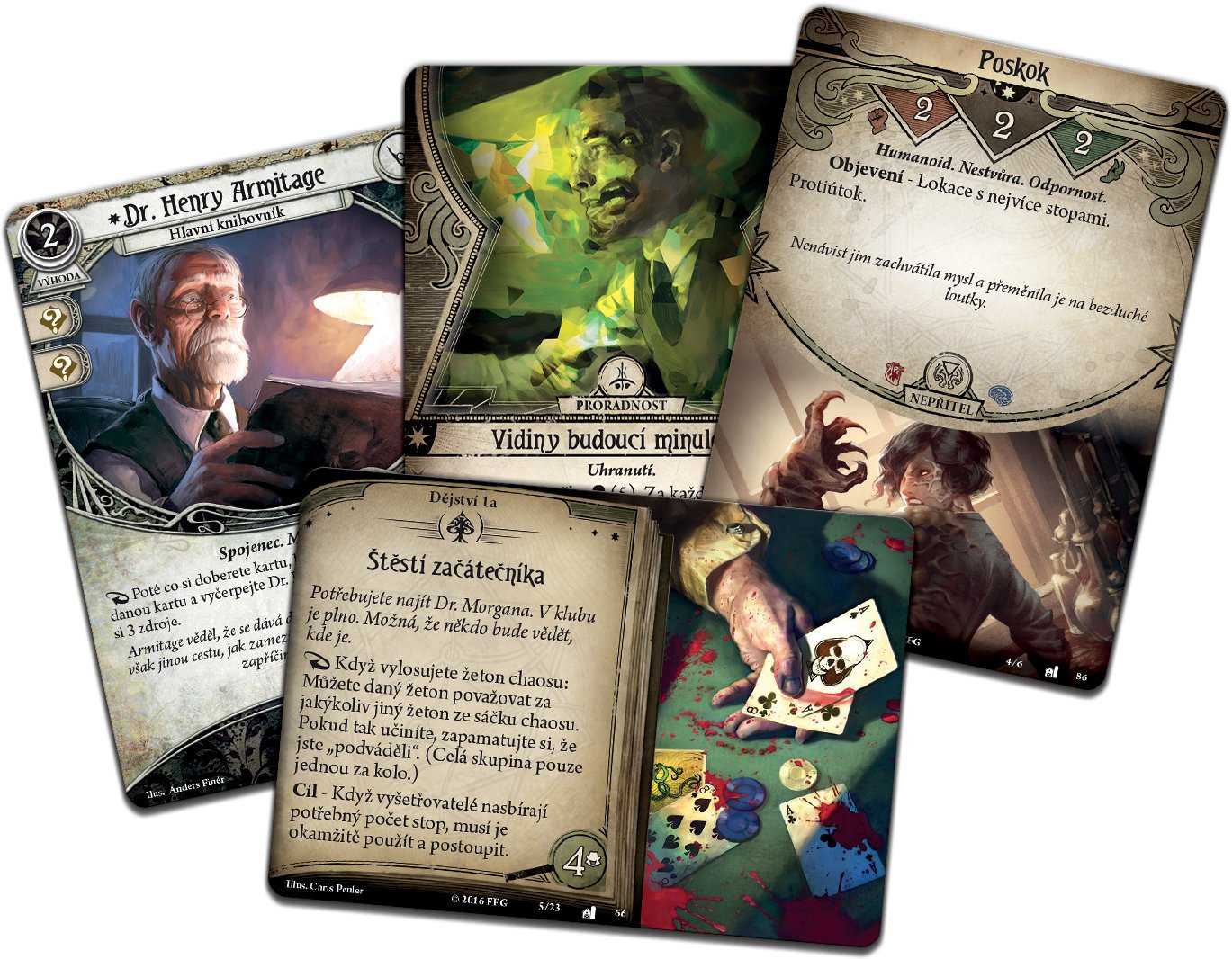 Pro hraní je potřeba základní sada karetní hry Arkham Horror.