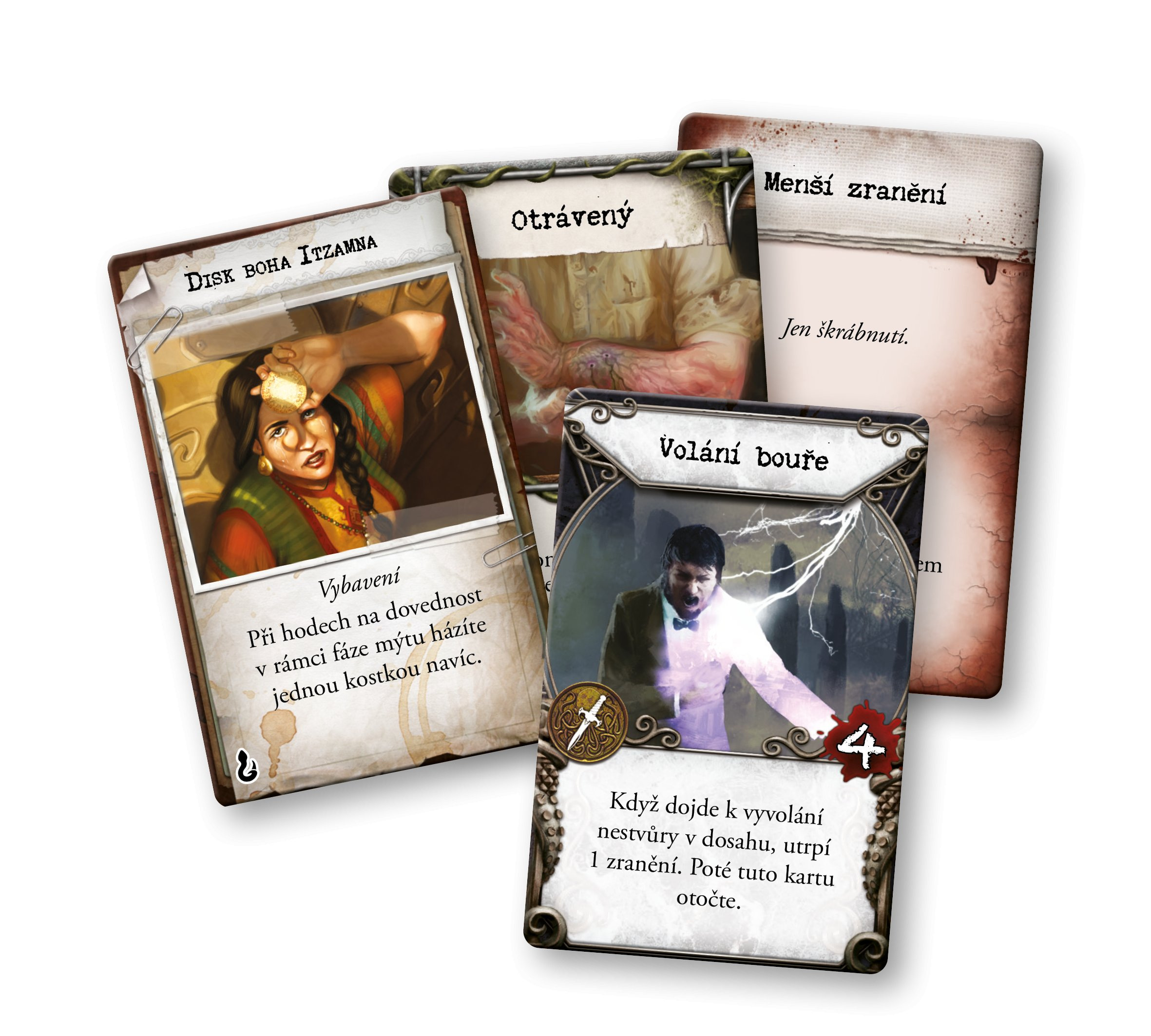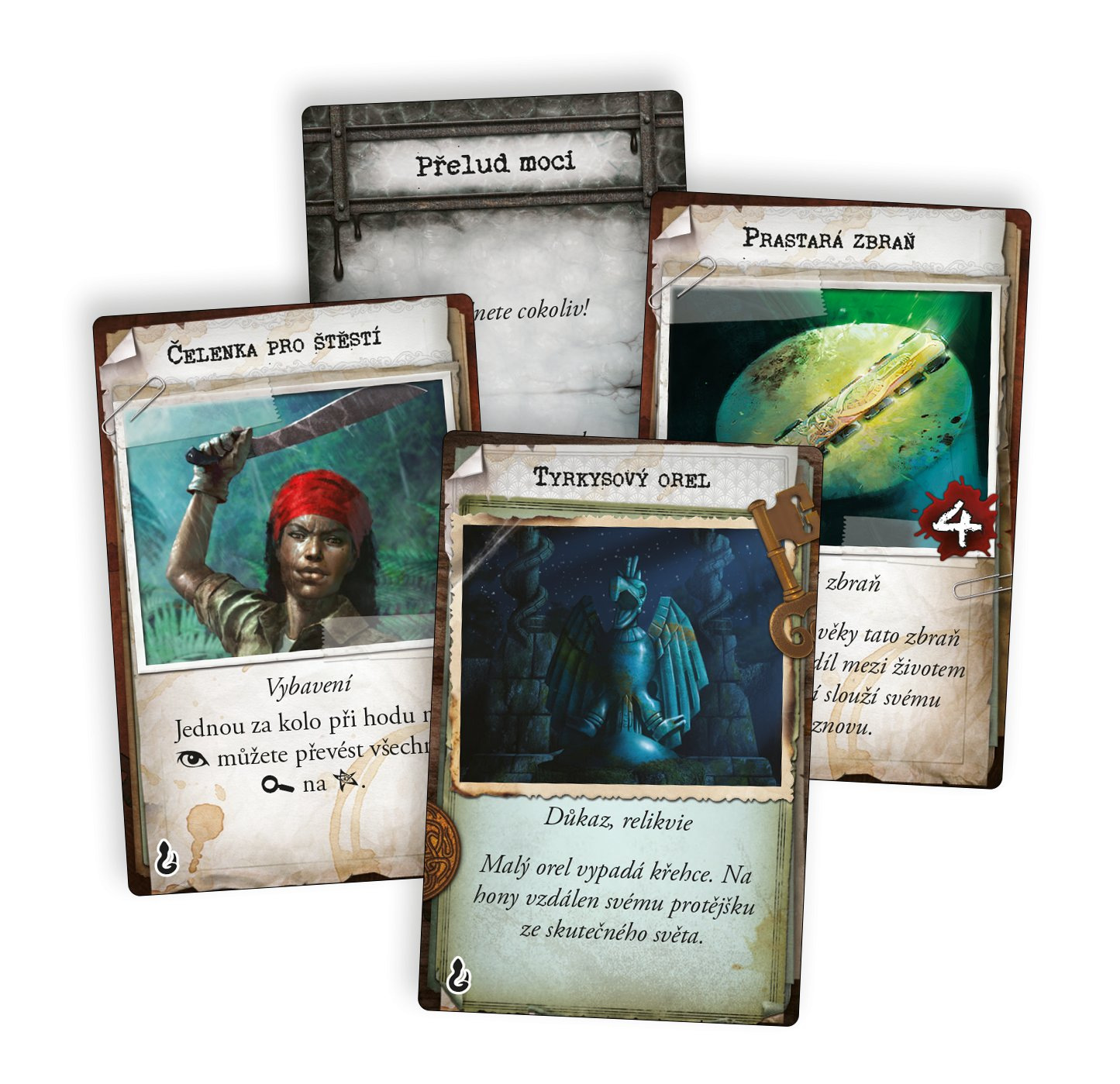 Obsah balení 1 pravidla 4 karty vyšetřovatelů a příslušné figurky 17 mapových dílů 16 karet běžných předmětů 5 karet unikátních předmětů 15 karet kouzel 12 karet se stavem 56 žetonů