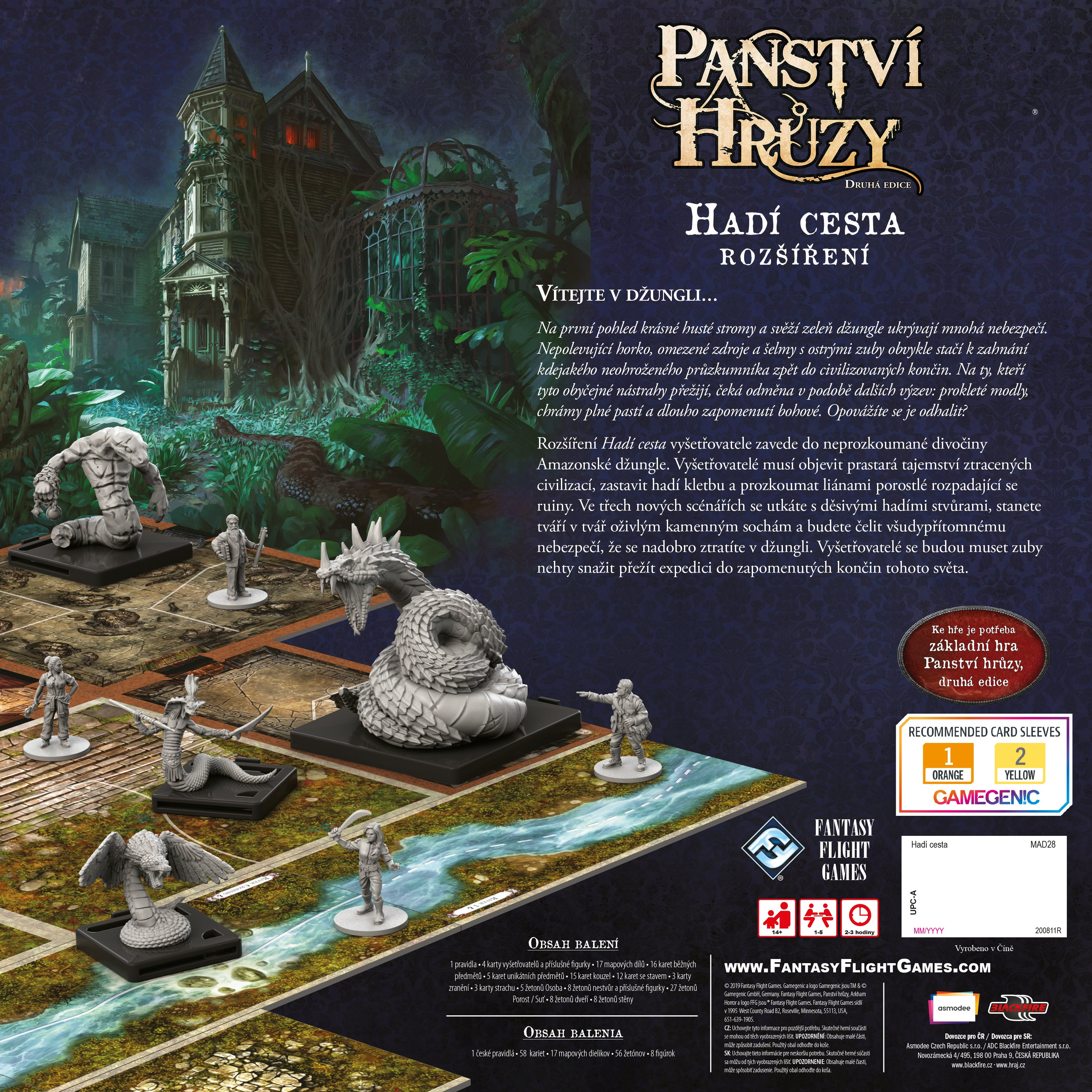 Rozšíření Hadí cesta vyšetřovatele zavede do neprozkoumané divočiny Amazonské džungle. Vyšetřovatelé musí objevit prastará tajemství ztracených civilizací, zastavit hadí kletbu a prozkoumat liánami porostlé rozpadající se ruiny. Ve třech nových scénářích se utkáte s děsivými hadími stvůrami, stanete tváří v tvář oživlým kamenným sochám a budete čelit všudypřítomnému nebezpečí, že se nadobro ztratíte v džungli. Vyšetřovatelé se budou muset zuby nehty snažit přežít expedici do zapomenutých končin tohoto světa.