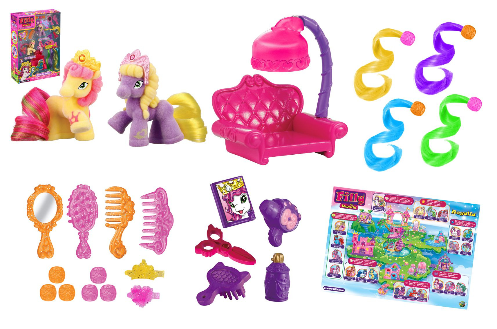 Vydejte se do Royalie, kouzelné země, ve které žijí koníčci Filly Royale. Všichni tito koníci mají krásné ocásky v tak úžasných barvách, že si to snad ani neumíte představit. Na jejich korunkách se třpytí krásné křišťály. Rozměry balení 18 x 27 x 6 cm. Vhodné pro děti od 3 let.