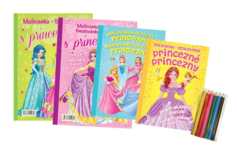 Beschreibung FONI Book FONI Buch Malbücher+Aktivitäten Prinzessinnen 4 Stk. +Buntstifte CZ+SK Version im Beutel 21x29cm