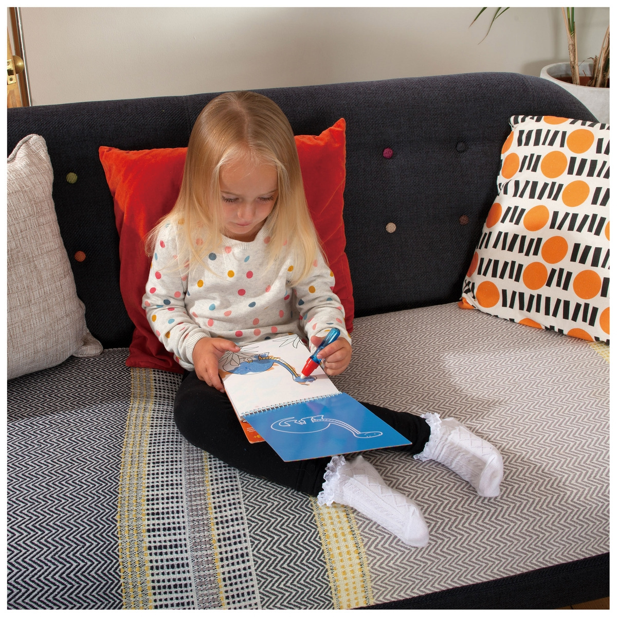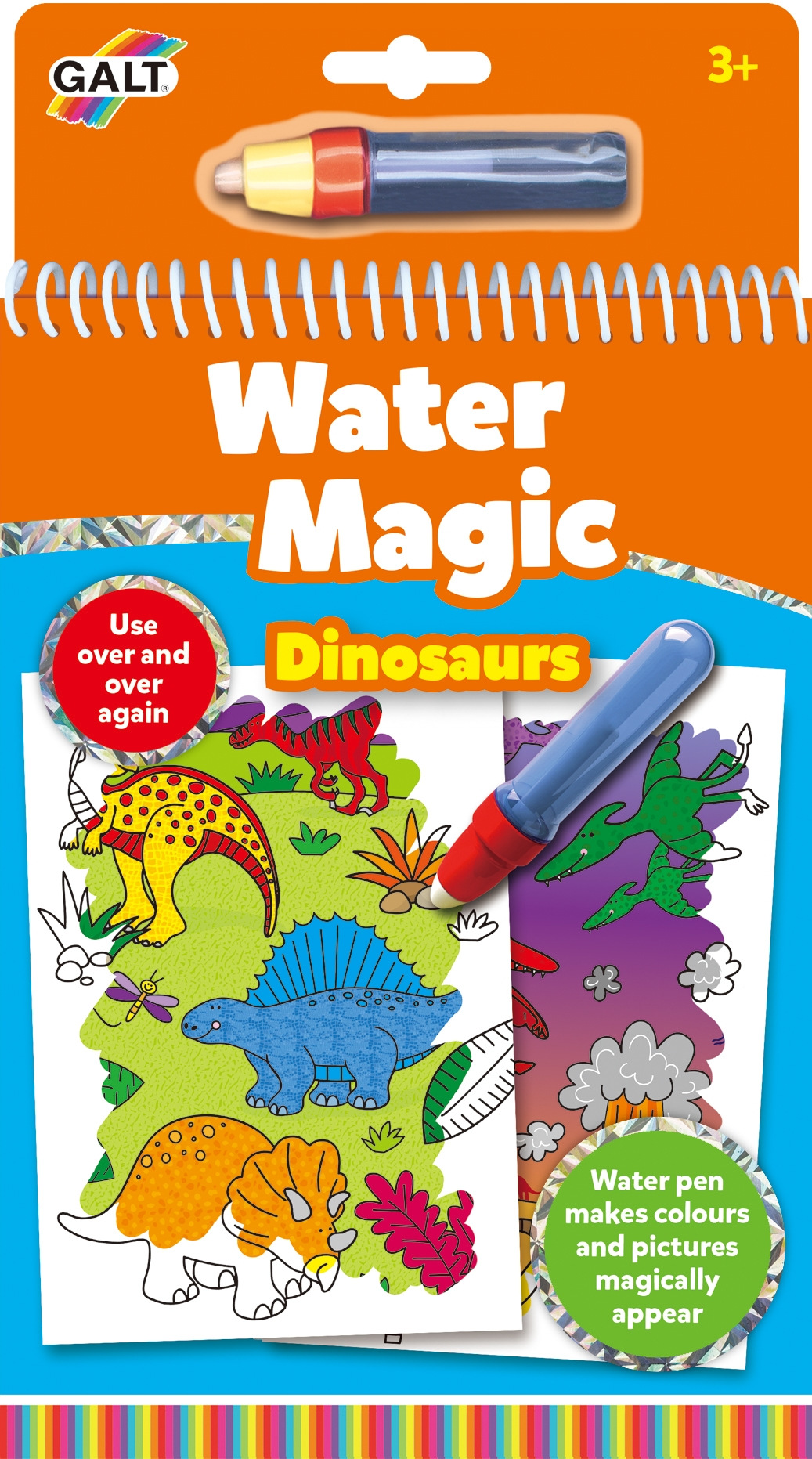 Sada kouzelných omalovánek Vodní magie pro nejmenší s opakovaně použitelnými obrázkovými deskami na pevném očku a novým velkým vodním perem. Tyto zábavné omalovánky obsahují opakovaně použitelné obrázky, které se vybarví vodním perem. Naplníme pero vodou a jeho pomocí dítě odkrývá schované obrázky dinosauřích mláďat. Obrázky se jako zázrakem vybarví a barvy pak zase zmizí, takže je děti mohou vybarvovat pořád dokola. Ideální pro cestování. Rozměry knížky: 265 x 180 x 180 mm