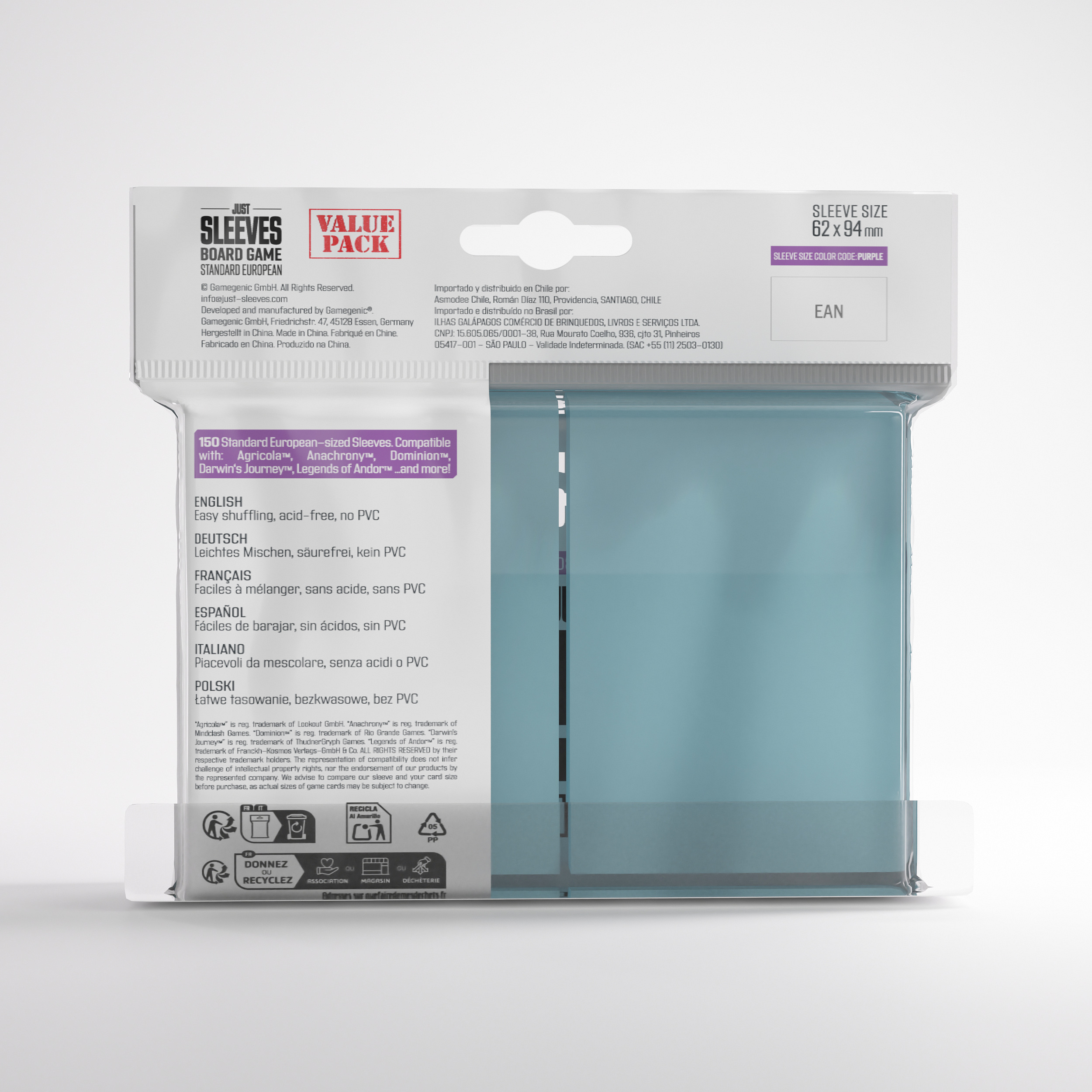 Beschreibung Gamegenic: Just Sleeves - Standard European Value Pack (150)
