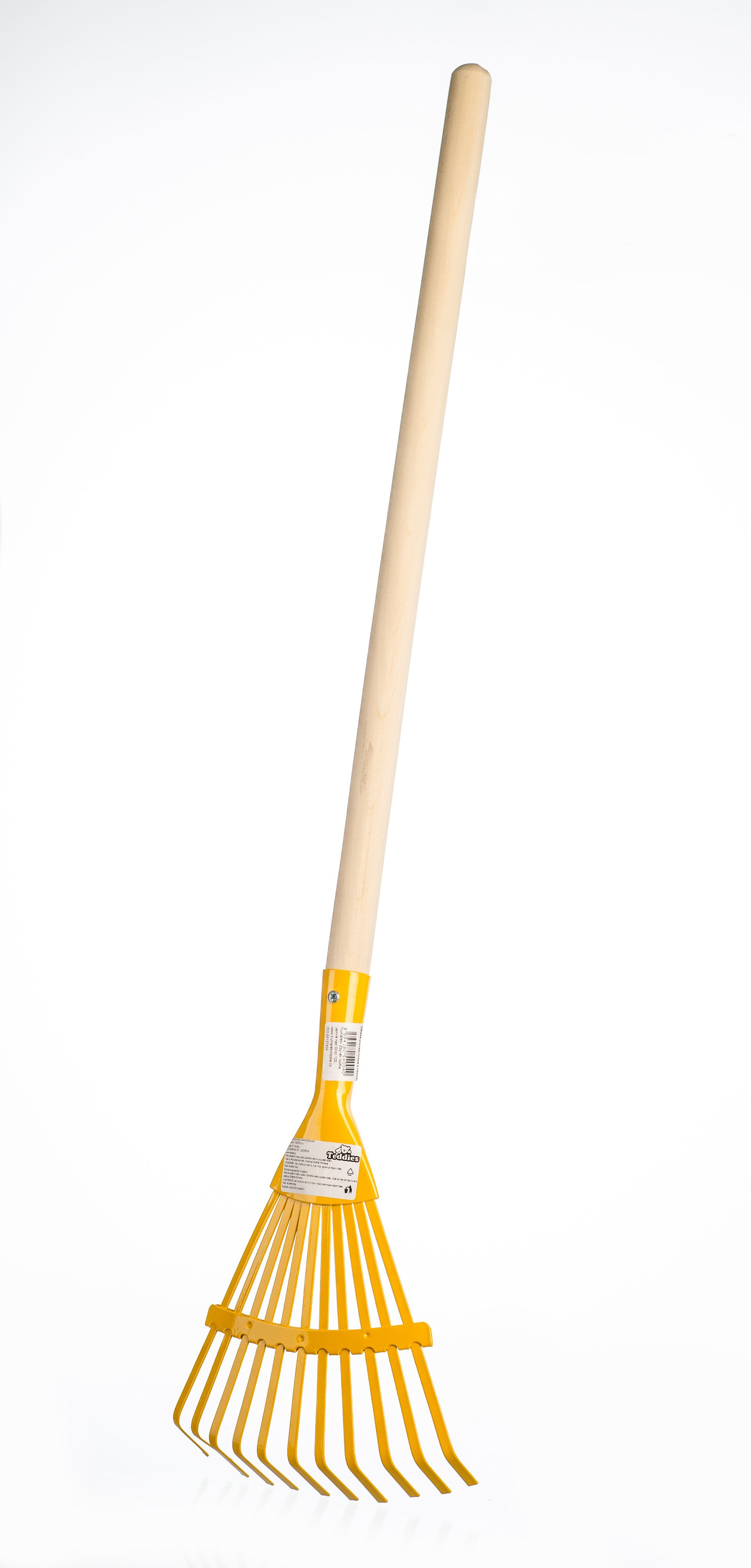 Mit Gartengeräten für Kinder macht die Gartenarbeit Spaß, sie fördern die Entwicklung der motorischen Fähigkeiten und motivieren Kinder, Zeit an der frischen Luft zu verbringen. Helfen Sie ihnen, eine Beziehung zur Arbeit und zur Natur aufzubauen. Rechen mit gelber Metallklinge und Holzgriff, Gesamtlänge 80 cm. Geeignet für Kinder ab 3 Jahren.