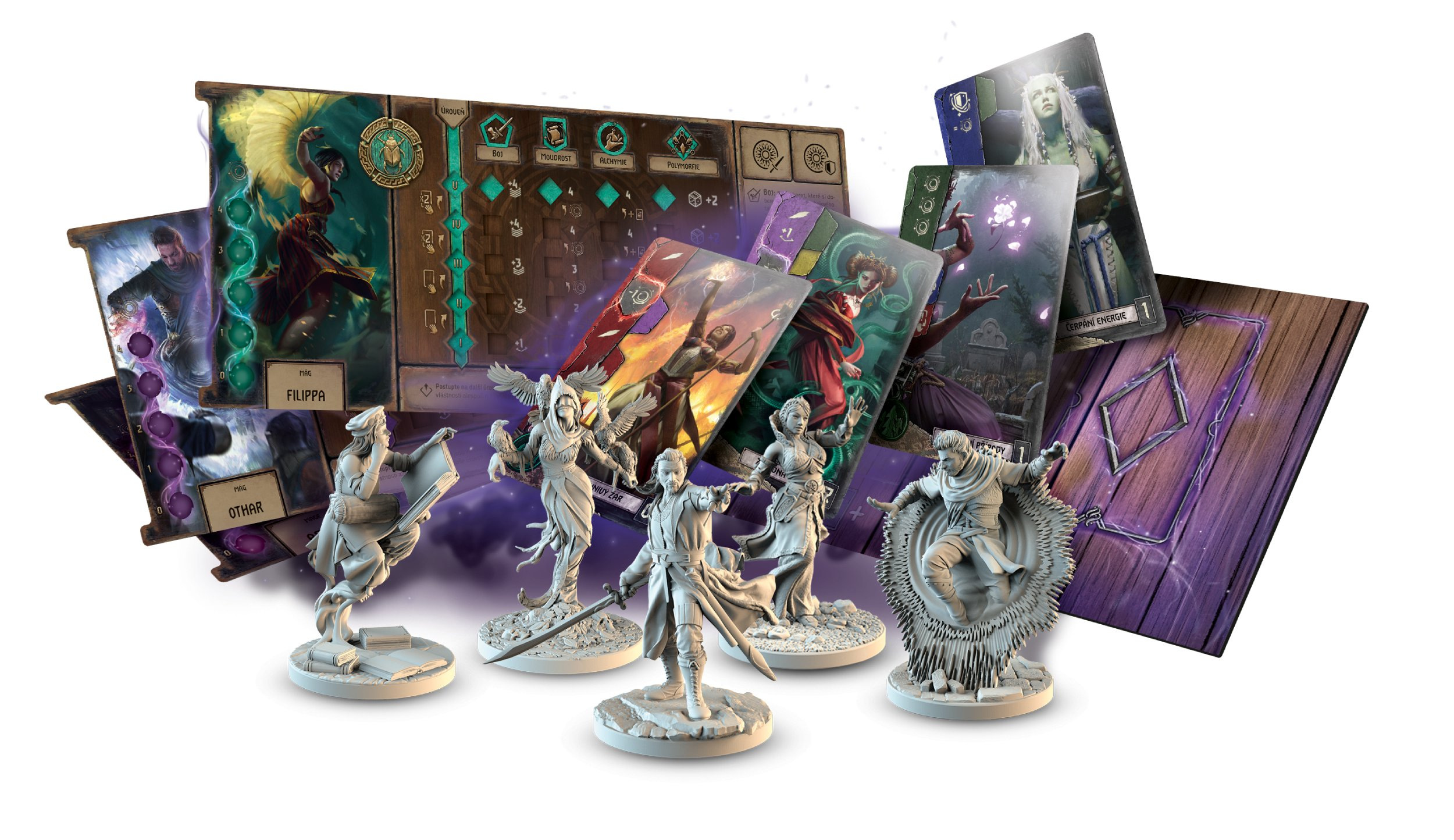 Obsah balení: 5 figurek mágů 5 žetonů specializací 5 plánů hráčů 20 karet trofejí 5 bodovacích žetonů 140 karet akcí 30 dřevěných kostiček 1 herní plán 1 pravidla
