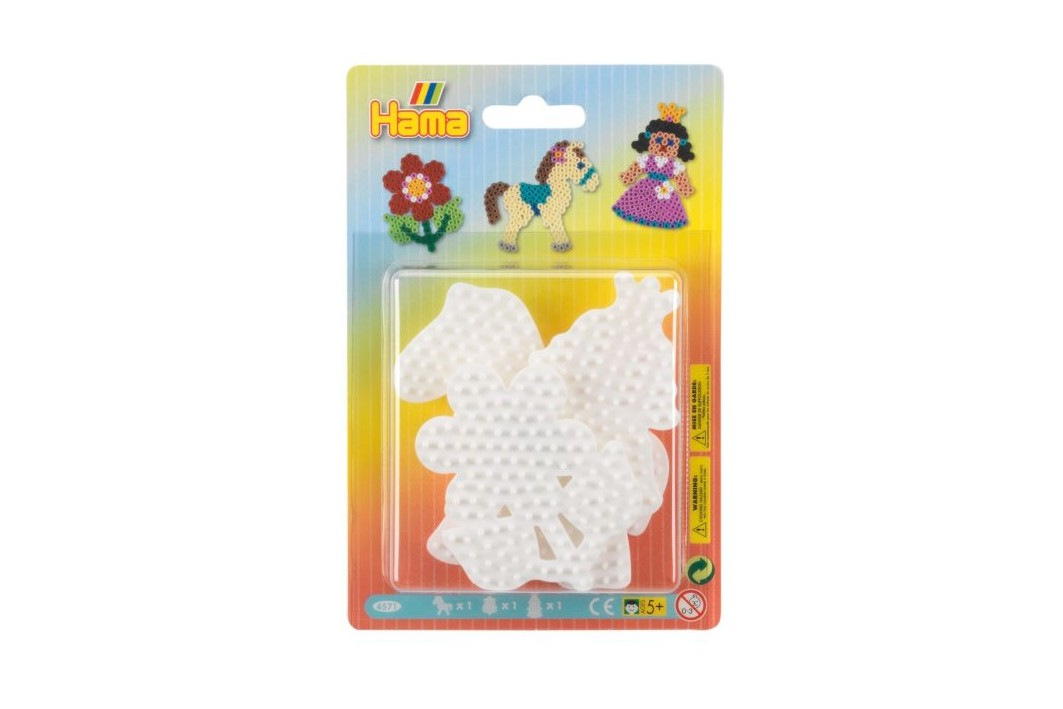 Hama Bügelperlenplatte - Blume, Pferd, Prinzessin Kunststoff 3 Stück auf Karte 12x18x3cm