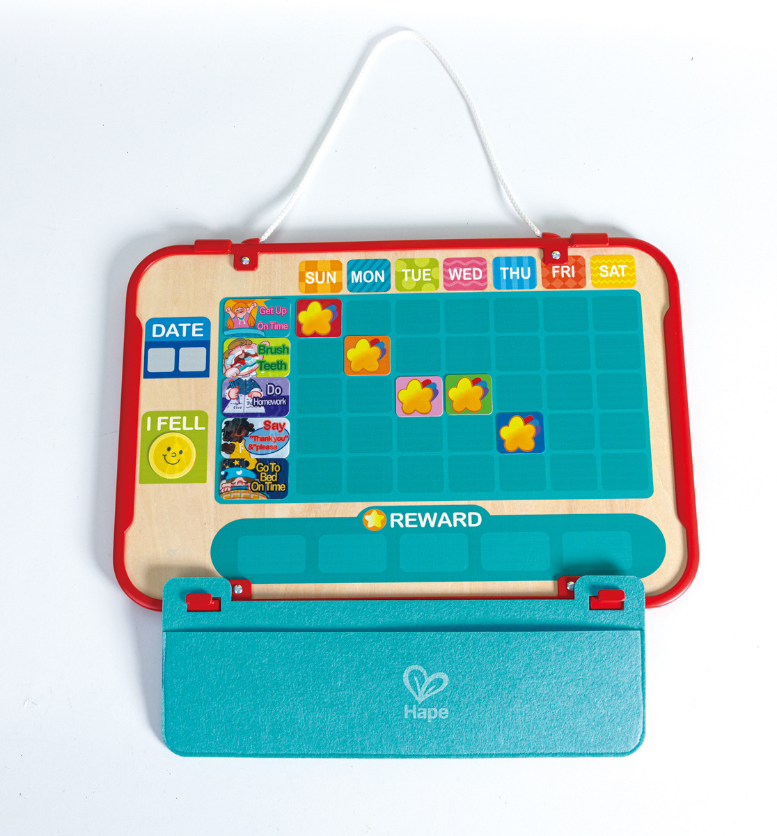 Tabulka odměn s oboustranným designem od Hape. Vhodné pro vytváření návyků a označování data. Přizpůsobitelné pomocí barevných nálepek. Tabulku lze zavěsit. Rozměr balení: 45x2x30,5 cm. Věk 3+