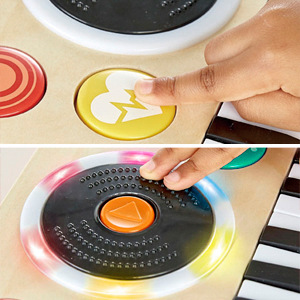 Pomozte svému dítěti objevte hudební nadání s Mixážním pultem HAPE, kdy jako malý DJové rozjedou své první melodie. Tento hudební nástroj má 18 kláves klavíru a černou desku. Vyberte si mezi čtyřmi různými nástroji, 18 zvukovými efekty, čtyřmi DJ efekty a pěti stopami na pozadí, do kterých můžete míchat hudbu. Hlasitost lze nastavit a hudebním mistrům se bude líbit posuvník tempa, který mění rychlost hudby. Bude se jim také líbit interaktivní hra, kdy se stanou DJem herny, zatímco světla blikají do rytmu. Malé děti se budou při hraní nejen bavit, ale také si osvojí základní hudební dovednosti, lásku k hudbě a zároveň zdokonalí koordinaci ruka-oko a smyl pro rytmus. Rozměr: 34 x 4,2 x 18,5 cm. Rozměr balení: 35,5 x 15,5 x 20,5 cm. Baterie: 3 x AA (baterie jsou součástí balení). Věk: 1+. Video: https://www.youtube.com/watch?v=Fc99xhm9UbQ