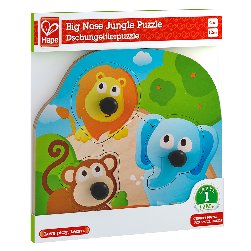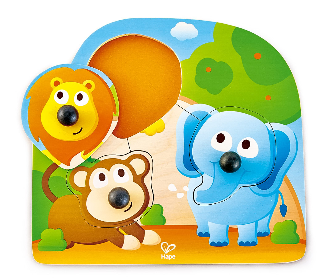 Puzzle s úchytkami s obrázky zvířátek z divočiny jsou v ideální velikosti pro malé ručičky. Sada obsahuje 4 dílky. Poutavé barevné provedení. Hračka pomáhá rozvíjet motorické dovednosti. Věk: 12m+. Rozměr: 22,5 x 20,8 x 3,5 cm.