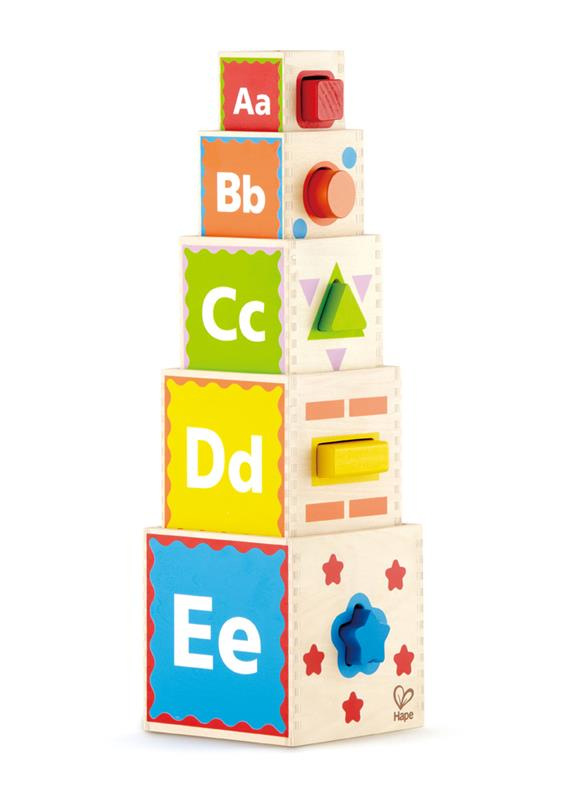 Pyramida z kostek s vkládacími tvary - to představuje nové možnosti hry pro vaše děti! Balení obsahuje pět různě velkých kostek z nichž každá má pět stran písmen, obrázků a číslic, barev a tvarů. Dále se děti naučí vkládat různé tvary. Hračka rozvíjí motorické a logické schopnosti dětí. Věková kategorie: 18m+. Velikost balení: 25,5 x 15 x 24 cm.