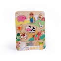 Objevuj svět zvířátek na farmě s krásnou dřevěnou vkládačkou! Barevně ilustrovaná deska a 12 veselých postaviček – od koníka a kravičky až po farmáře – pomáhá dětem rozvíjet jemnou motoriku, zrakové vnímání i logické myšlení. Každý dílek má pevné, zaoblené hrany a je uzpůsoben pro malé dětské ruce. Učení hrou začíná právě tady! Rozměr 21 x 30 cm Vhodné pro děti od 18 měsíců