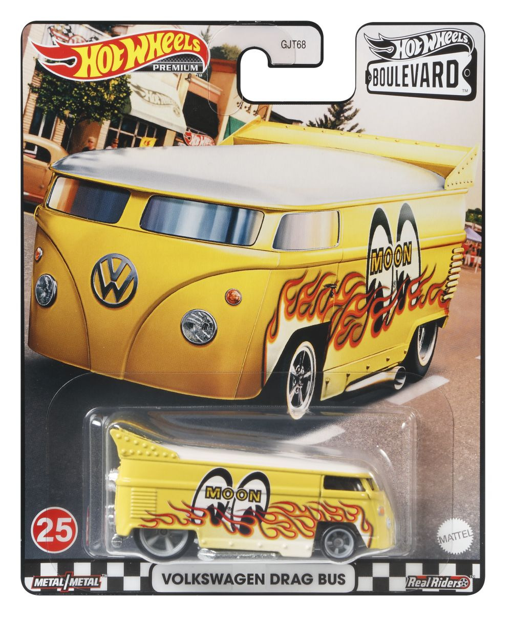 Wenn es eine Straße namens Hot Wheels Boulevard ™ gäbe, würden diese Premium-Modelle ihr GPS darauf einstellen, dorthin zu fahren. Diese großartige Kollektion von Ganzmetall-Karosserien im Maßstab 1:64 ist eine Nachbildung von bei Fans beliebten Fahrzeugen mit authentischen Real Rider™ Reifen und hochwertiger Grafik! Diese Kollektion von vier Sets mit jeweils fünf hochdetaillierten ikonischen Fahrzeugen ist wieder für Sammler aller Altersgruppen verfügbar. Jedes Modell hat exklusive dekorative und nummerierte Verpackungen. Sie können sie alle sammeln! Jeder wird je nach Verfügbarkeit einzeln verkauft. Farben und Dekorationen können variieren.