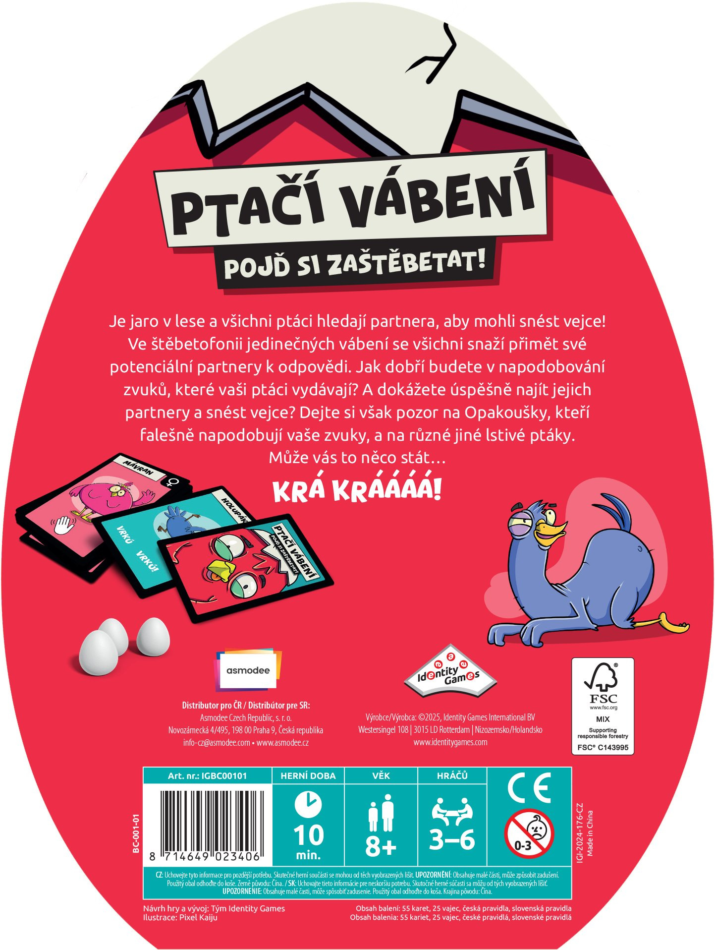Je jaro v lese a všichni ptáci hledají partnera, aby mohli snést vejce! Ve štěbetofonii jedinečných vábení se všichni snaží přimět své potenciální partnery k odpovědi. Jak dobří budete v napodobování zvuků, které vaši ptáci vydávají? A dokážete úspěšně najít jejich partnery a snést vejce? Dejte si však pozor na Opakoušky, kteří falešně napodobují vaše zvuky, a na různé jiné lstivé ptáky. Může vás to něco stát… Krá kráááá!