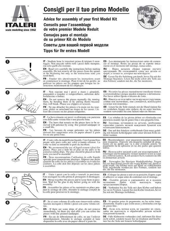 Balení obsahuje: Jeden plastový model s obtisky – Lepidlo na lepení plastu – 3 hlavní akrylové barvy (7 ml) - Štětec – Přesná pinzeta – Oboustranné brousítko – Kleštičky na vystřihování dílků