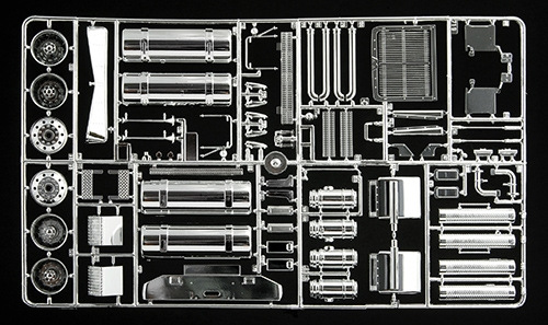 Model trucku ke slepení. Velikost: 1:24; 25,5 cm. Obtížnost: 4. PRYŽOVÉ PNEUMATIKY - KOMPLETNÍ HA