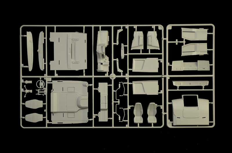100 % NEUES BAUSATZDESIGN – HOCHDETAILLIERTER INNENRAUM – MOTOR UND RAHMEN BIS INS KLEINSTE DETAIL AUSGEFÜHRT – OFFENE ODER GESCHLOSSENE FAHRERTÜR – CHROMAUFKLEBER – FOTOGEÄTZTE METALLTEILE Farbschema (von Italeri empfohlene Farben): 4768AP, 4682AP, 4605AP, 4678AP